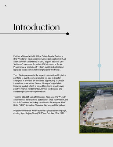 Table Contentsof 4 Introduction 6 The Opportunity 10 Key Investment Highlights 12 APAC Logistics Investment 14 Shanghai Leads China’s Transaction 16 YRD is the Largest & Most Significant 18 Recent Transactions in YRD 20 Strong Tenant Demand