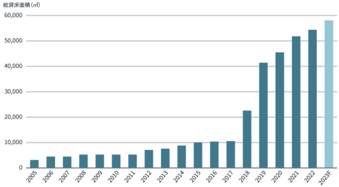 • 第4四半期にオンライン小売業、3PL企業等による旺盛な需要が持続したことか ら、ネットアブゾープションは289,000㎡となり、2023年通年では2,109,000㎡ となった。