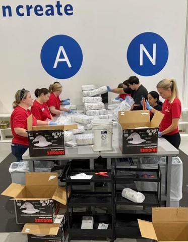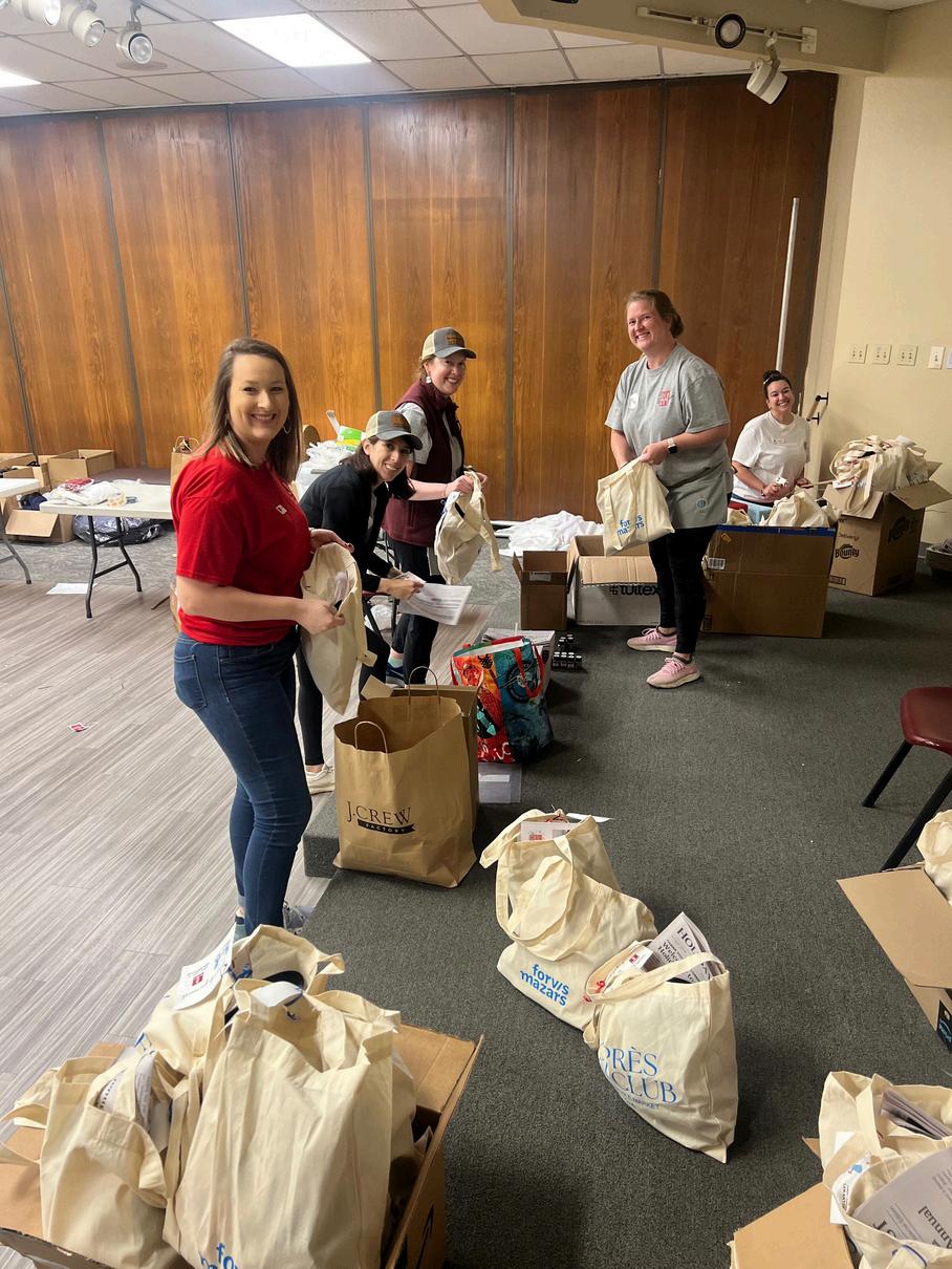 Olé Committee Lisa, Erica and volunteers prepping the swag bags for Preview Party