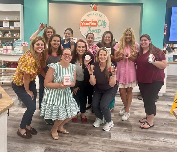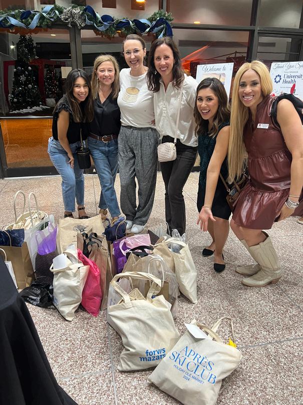 All the ladies showing off thier goodies. Former Olê Chair Sandrine and President Kristen Palme. Board Members AudreyandMonicawithfriends.