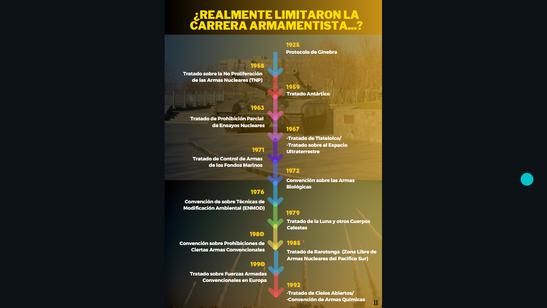 La Convención de Armas Biológica Protocolo de Ginebra de 1925, las de Armas Nucleares (ZLAN), el Trat Espacio Ultraterrestre de 1967 y el T Luna de 1979.