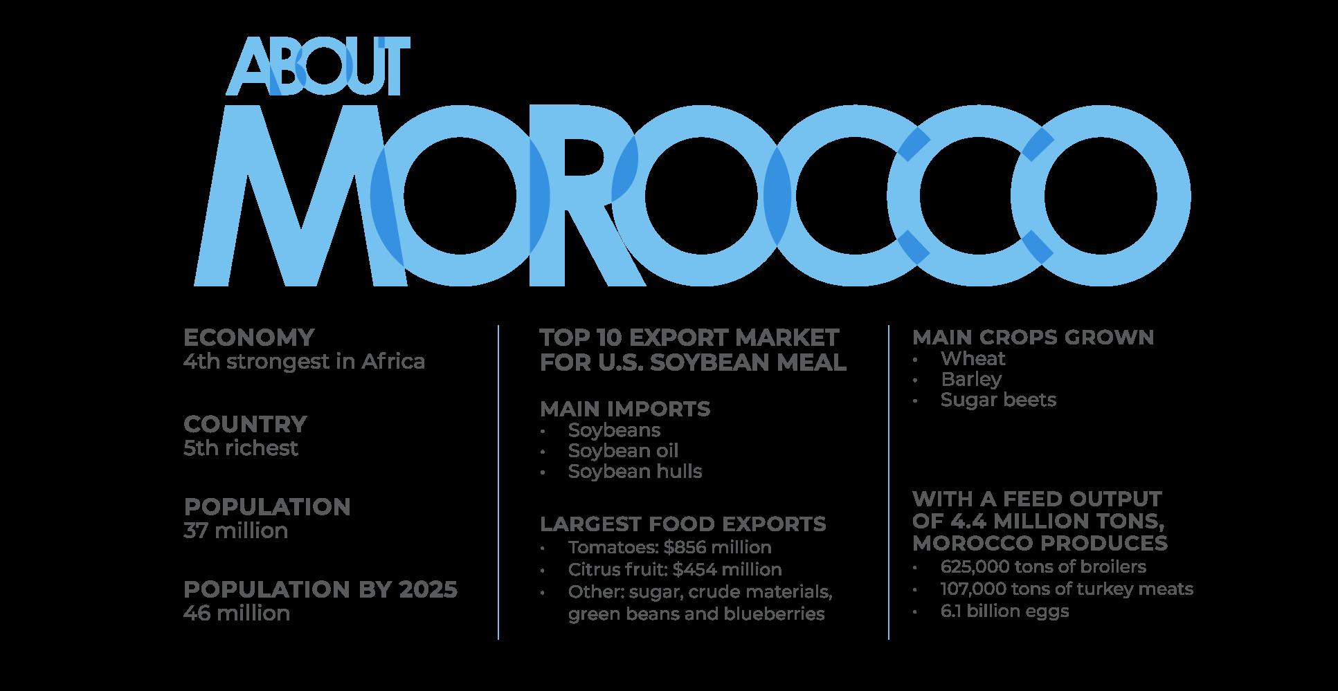 Egypt and Morocco, with a combined population of nearly 150 million, are important destinations for U.S. soy (we currently enjoy more than an 80% market share in both countries). Urbanization is occurring at a fast pace, creating additional demand for dairy, chicken, eggs, turkey and fish. The populations of both countries