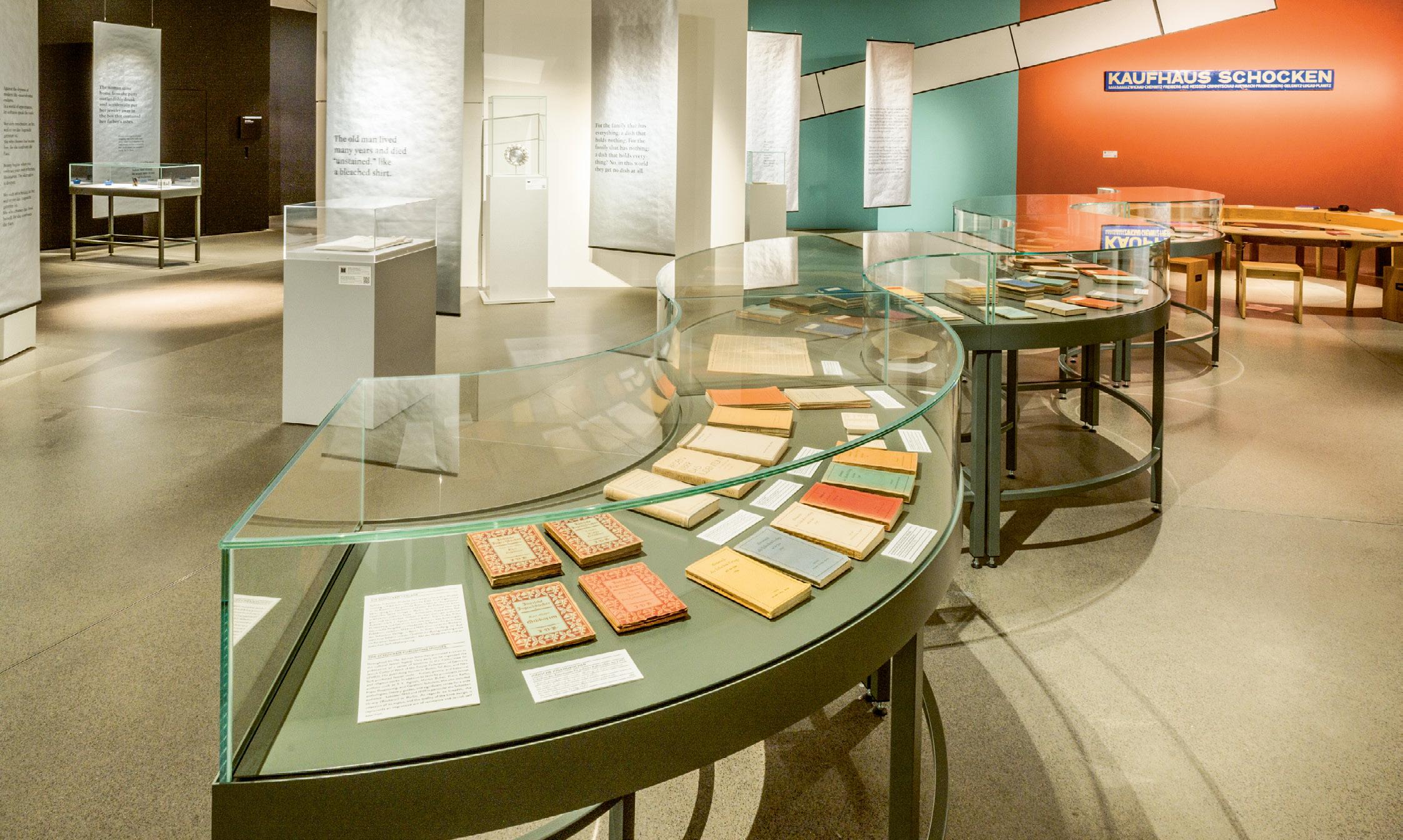 Das Fundament der Ausstellung bilden 120 Bücher aus den Schocken-Verlagen in Berlin, Tel Aviv und New York. Alle Bände werden in der Bibliothek des Museums aufbewahrt. Der Schocken Verlag hielt ab seiner Gründung 1931 über zahlreiche Veröffentlichungen kontinuierlich jüdische Kultur