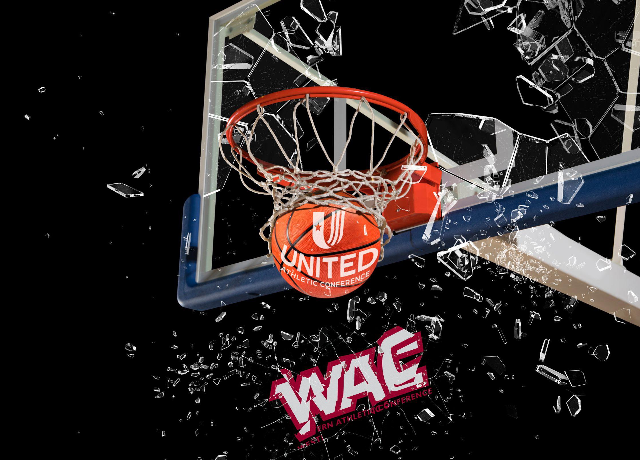 Western Athletic Conference logo shatters from the impact of the United Athletic Conference rebrand.