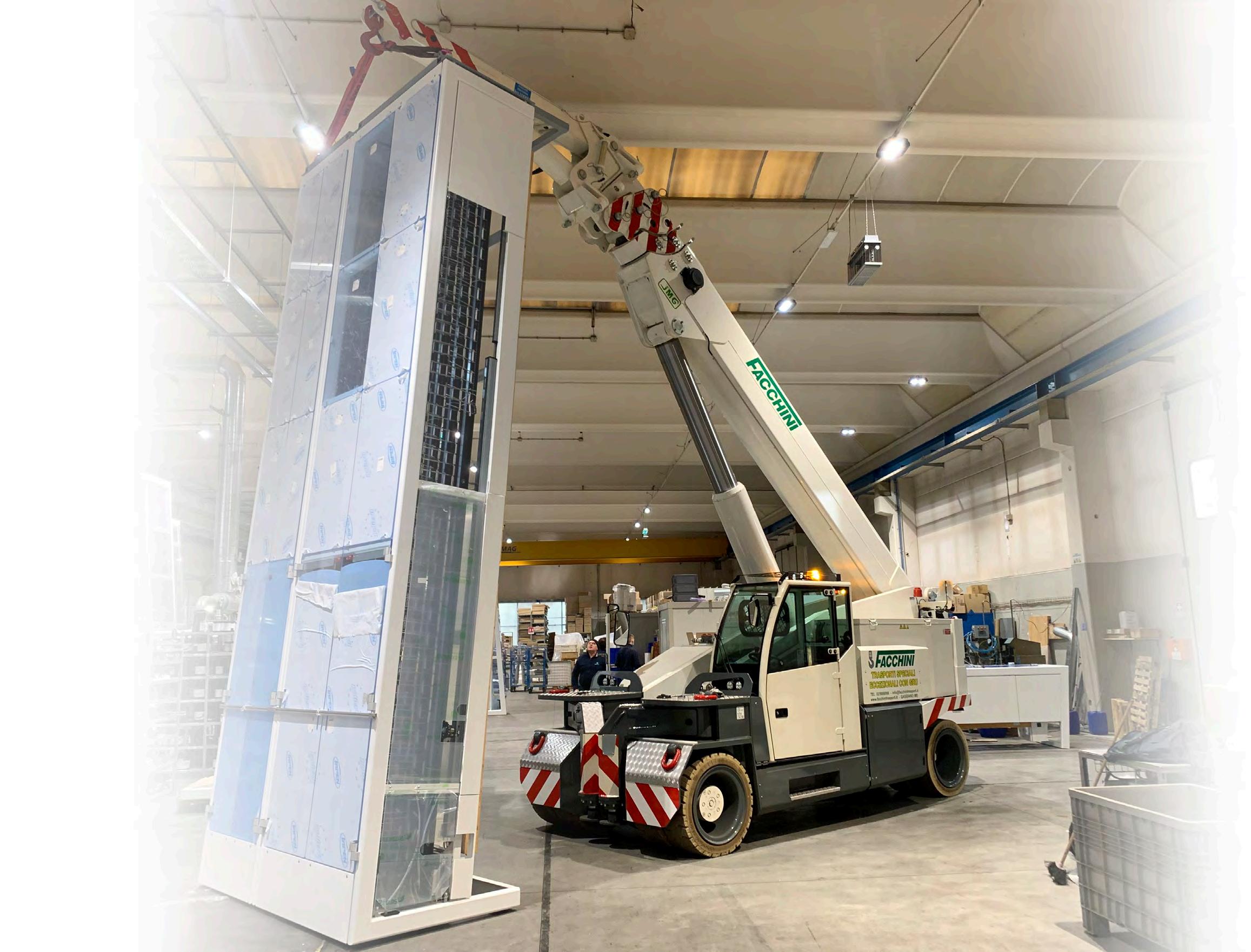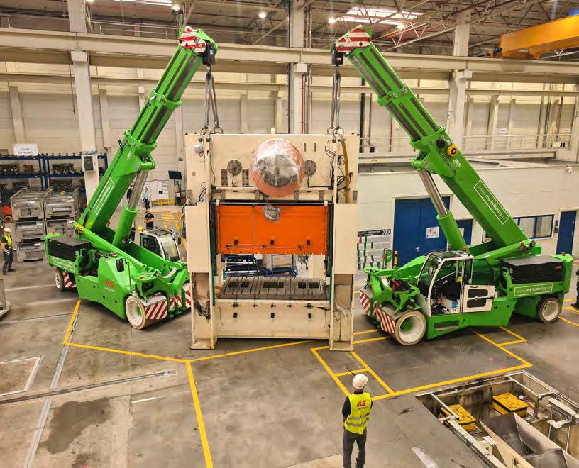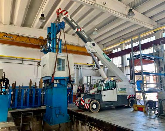 Led by Antonio Benedetto, MB Menabue specialises in the handling of machine tools and general lifting, for which it has decided to invest in a large, high-quality fleet of vehicles. This includes not only JMG machines but also units from other renowned manufacturers, such as Genie and CTE for platforms, self-propelled in the first instance and truck-mounted in the second. Antonio Benedetto’s guiding principle is that the machines in his fleet must not only be state-ofthe-art in terms of technology, but also in terms of sustainability. This is why his company has a comprehensive range of electric self-propelled cranes, which are ideal for carrying out lifting tasks in tight spaces. Clearly, JMG’s cranes are at the front line here, with both pick&carry and carry-deck models being available. With regards to the latter, it is to Antonio Benedetto’s credit that he was the first to realise the advantages of this type of machine and in actual fact the company is the first in Italy to have purchased all three models in the range: the MC100RE, the MC22500RE and the MC50000RE. Machinery yes, but also a great deal of professionalism, which is embodied in a highly qualified workforce and the execution of a precision service coupled with the utmost in safety.