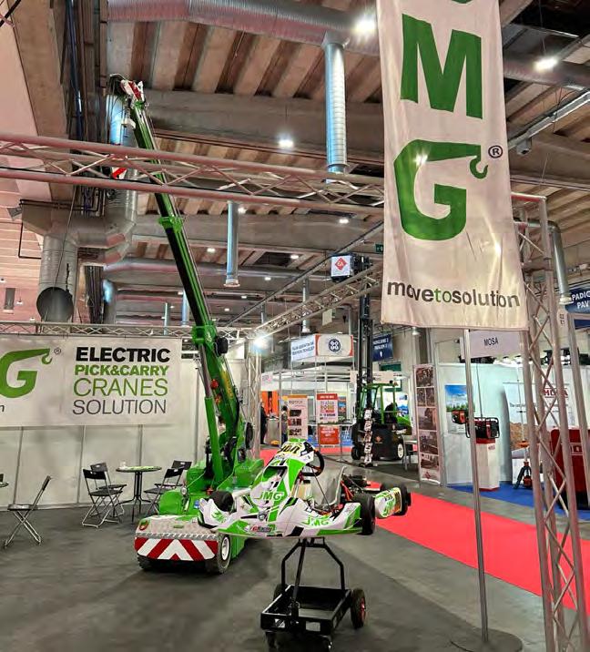 il rumore (vantaggio particolarmente rilevante in ambienti urbani o in siti vicini a comunità residenziali). A questi plus si aggiungono poi quelli di carattere operativo, come la versatilità che le pick&carry permettono (compatte e agili, queste macchine sono ideali per operare in spazi ristretti, caratteristica fondamentale per i siti di mid-stream dove lo spazio può essere limitato) nonché la loro (essenziali per la manipolazione sicura di materiali pericolosi o delicati, tipici dei settori oil&gas e delle reti idriche). In particolare, a Piacenza JMG ha esposto la MC100RE, che con le sue caratteristiche si presta perfettamente al settore, e la MC45SB, riscontrando notevole interesse e avendo la possibilità di illustrare l’intera gamma di gru elettriche a batteria a molti player del settore che hanno visitato la manifestazione. Sempre allo stand di JMG era presente anche il kart di Alessandro Battini, che è stata l’occasione per trasmettere un ulteriore messaggio caro a JMG, ossia l’attenzione che rivolge a eccellenze in altri ambiti e ai giovani, non solo in azienda ma anche al di fuori.