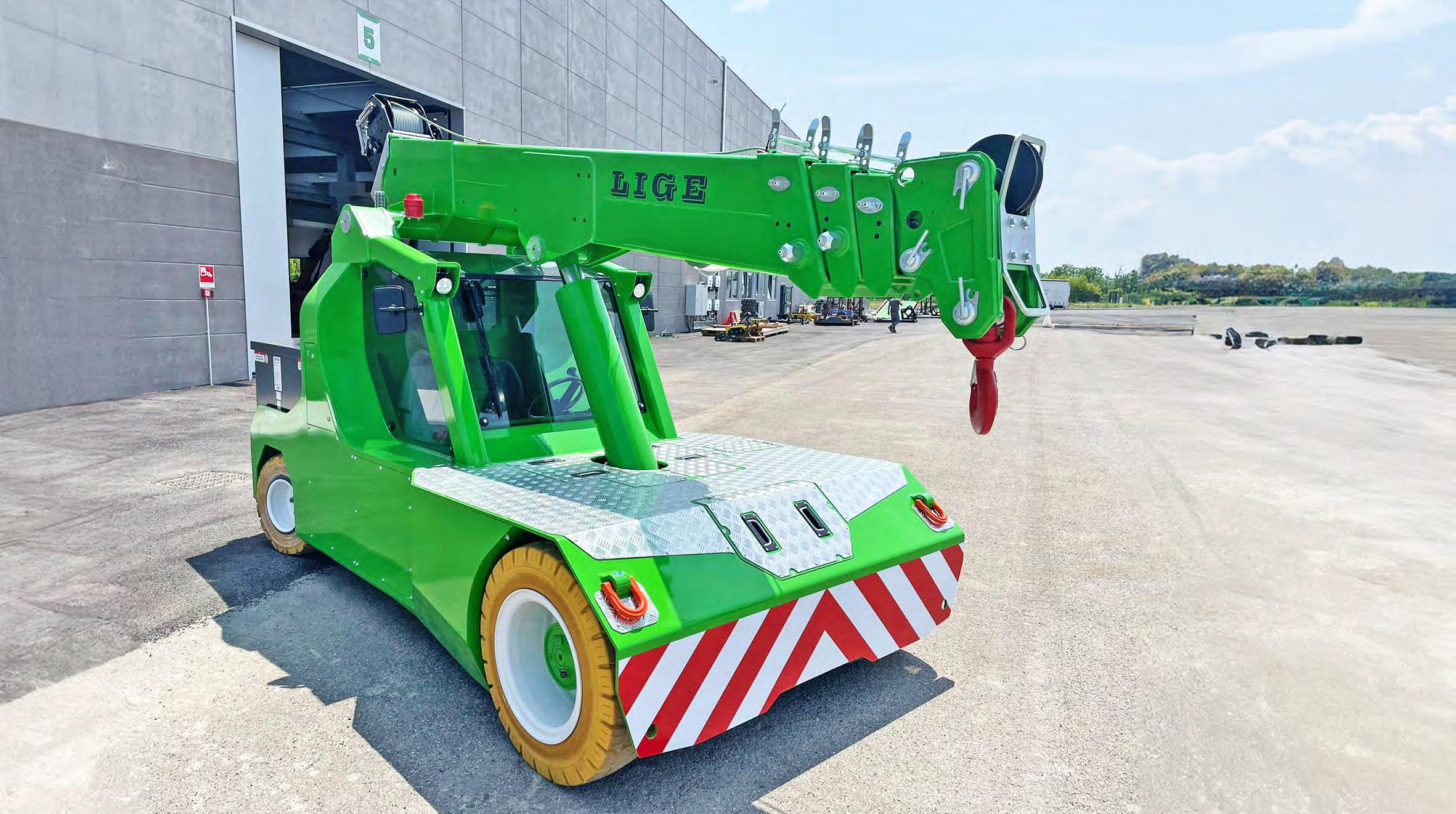 Versatility is also accentuated by the wide range of available optionals, from hydraulic winch to hydraulic jib; or mechanical jib with mechanical extension, to hydraulic forks. Non-marking tires and atex conversions complete the Lige's range of optionals. But compactness and versatility are not the only features that set them apart. Unlike the high cranes made by JMG, Lige cranes have an "alternative" structure in which the lifting arm, moved by the usual hydraulic cylinder, pivots at the rear of the cabin and not next to it. This structure makes Lige cranes particularly suitable for lifting operations, where significant lifting power is needed in extremely confined spaces. Lastly, a mention must be made of the cab, which accommodates the operator in a comfortable and ergonomic environment despite its compactness worthy of a Lilliputian, with intuitive controls and easy ascent/descent.