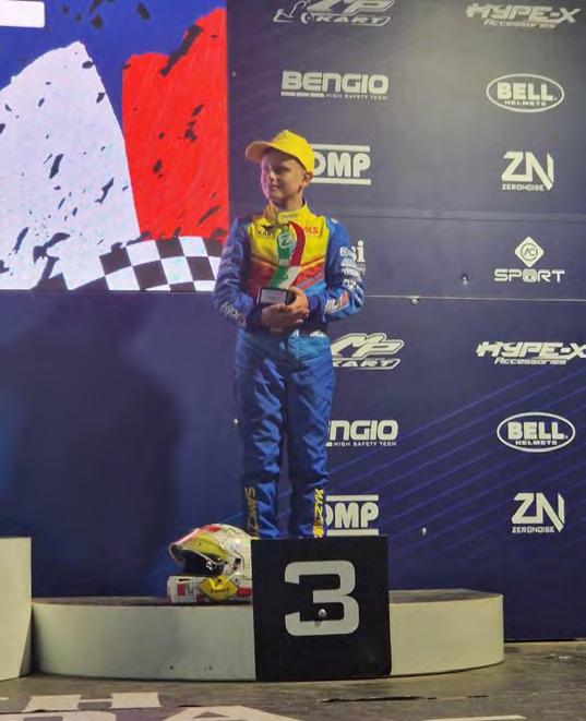 Alessandro: Perquesto2024puntoavincereil campiona-toIAMEKA100 Macistiamopreparando,conun motorepiùpotente, per gareggiare nel campionato IAME X30 Junior, nel2025.Conquestonuovomotore parteciperòanchealle gare che si svolgeranno quest’anno, cercando di puntare al miglior piazzamento Il 2024 sarà un anno impegnativo, parteciperò praticamente a due Categorie, ma non esclu-dodifare anchegareinCampionatiminori,perchésapete come si dice, no? Più corri più vai!