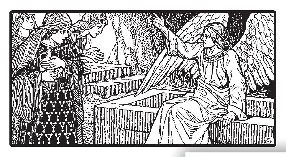 Mas o sepulcro não ficará selado para sempre; é preciso que seja aberto e que testemunhe com clareza meridiana que aquele cujo corpo inanimado o habitou durante algumas horas o deixou para sempre. De repente, a terra treme, como no momento em que Jesus deu o último suspiro na cruz; mas esse tremor do globo já não significa terror; simboliza alegria. OAnjo do Senhor desce do céu, faz rolar a pedra da entrada e senta-se sobre ela em majestade; o seu manto é de uma brancura brilhante e o seu olhar irradia brilho. Perante a sua presença, os guardiães do sepulcro caem por terra, aterrorizados; permanecem como mortos até que a bondade divina lhes acalma o terror; levantam-se e, deixando aquele lugar, entram na cidade para dar conta do que viram.