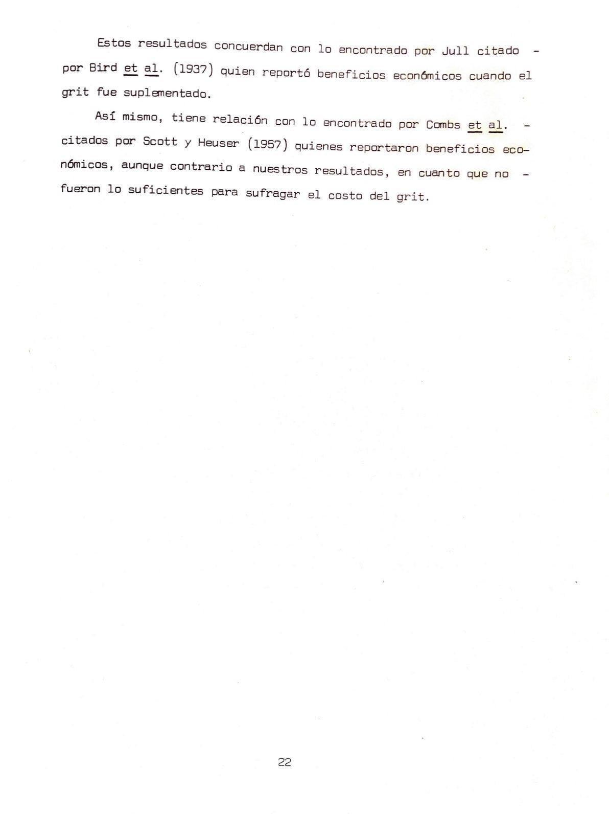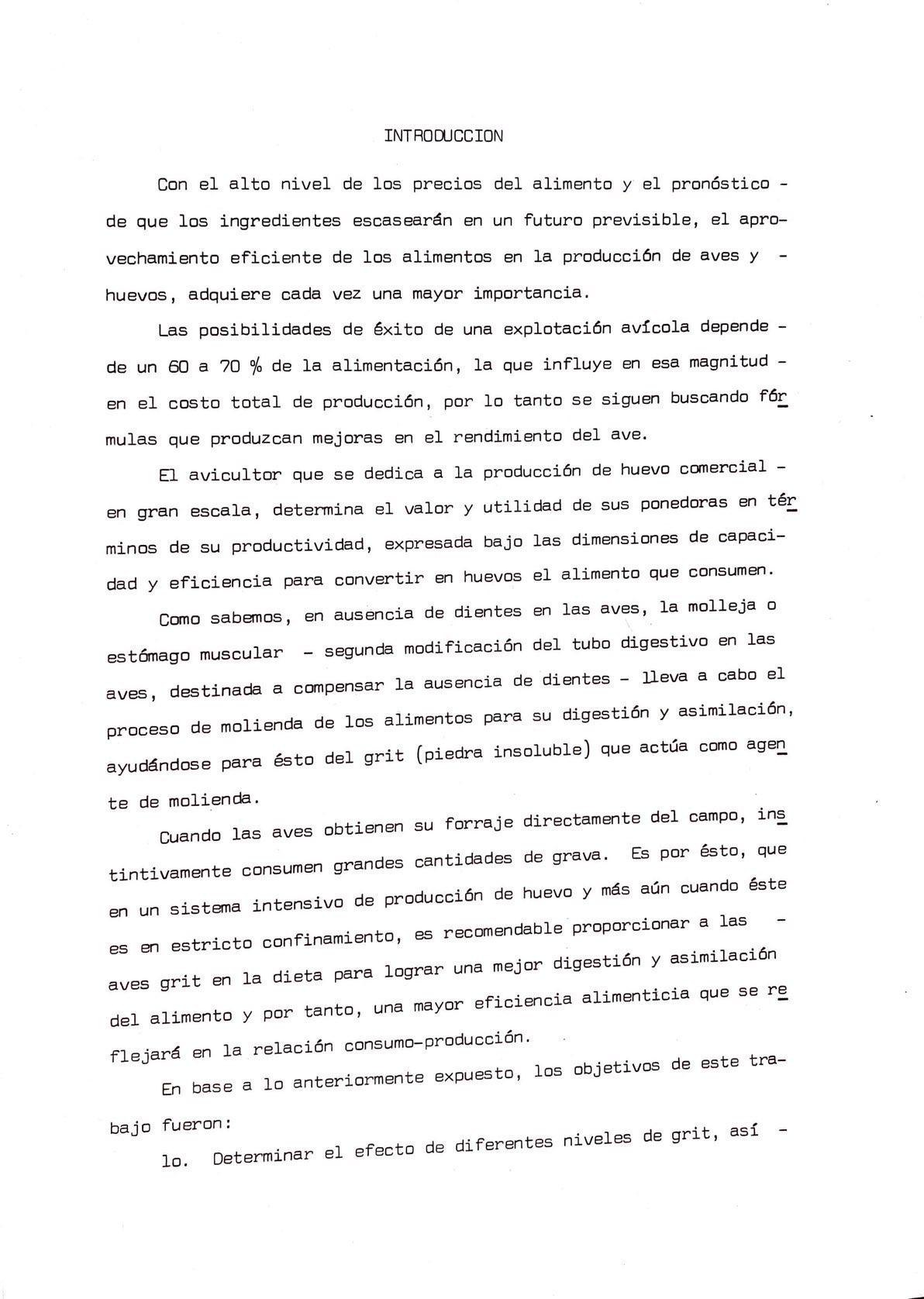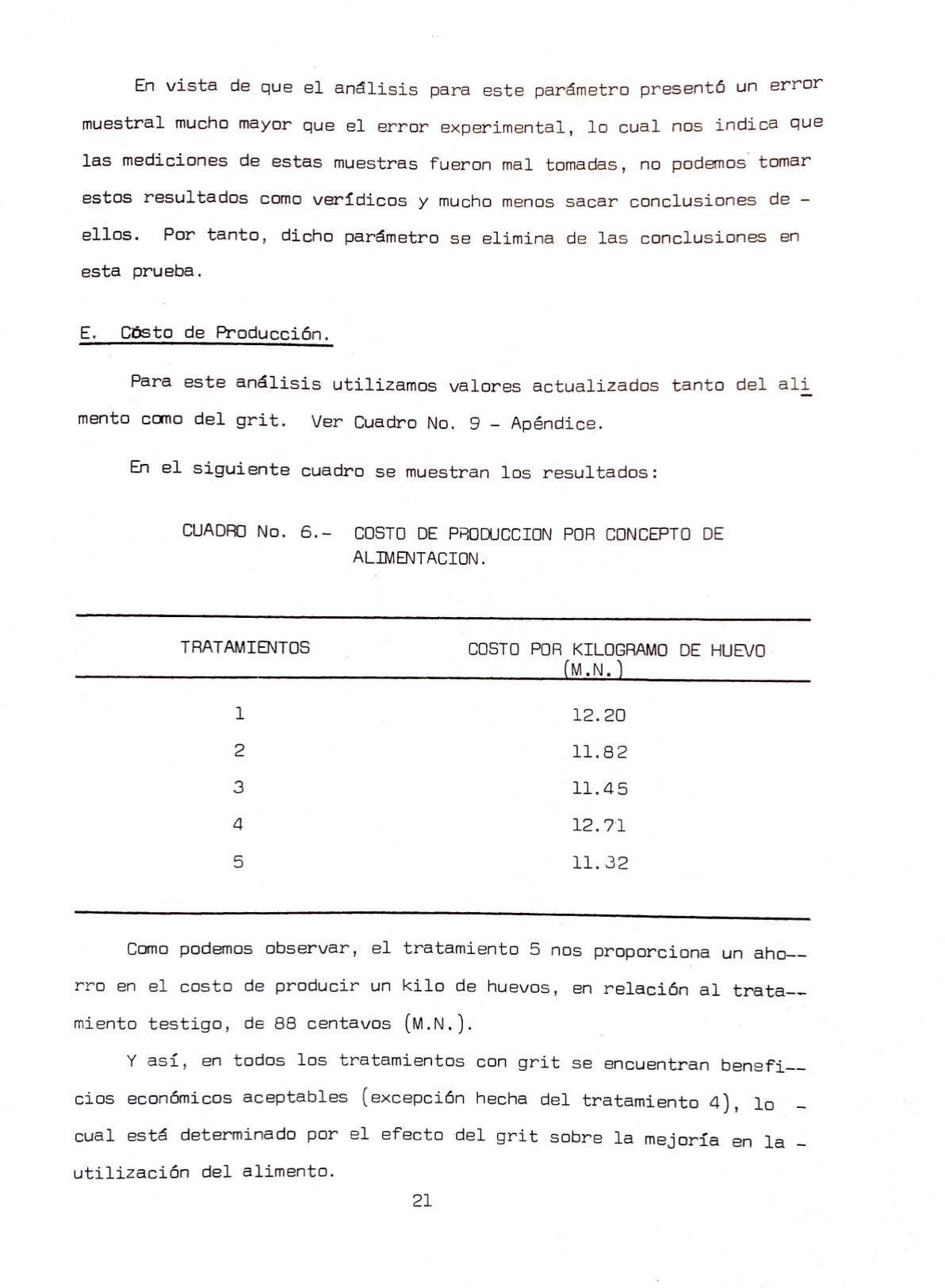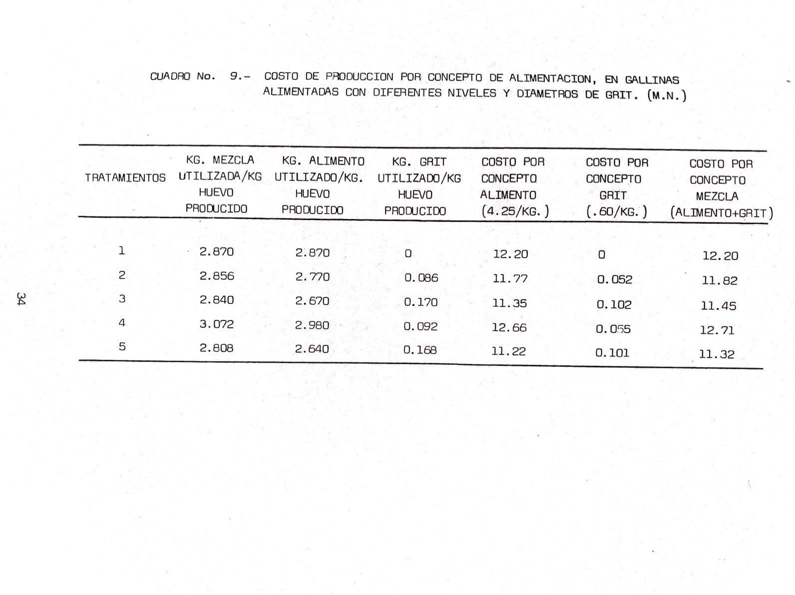 2. Determinar el costo de producción por concepto de alimenta ción con los diferentes niveles y diámetros de grit.