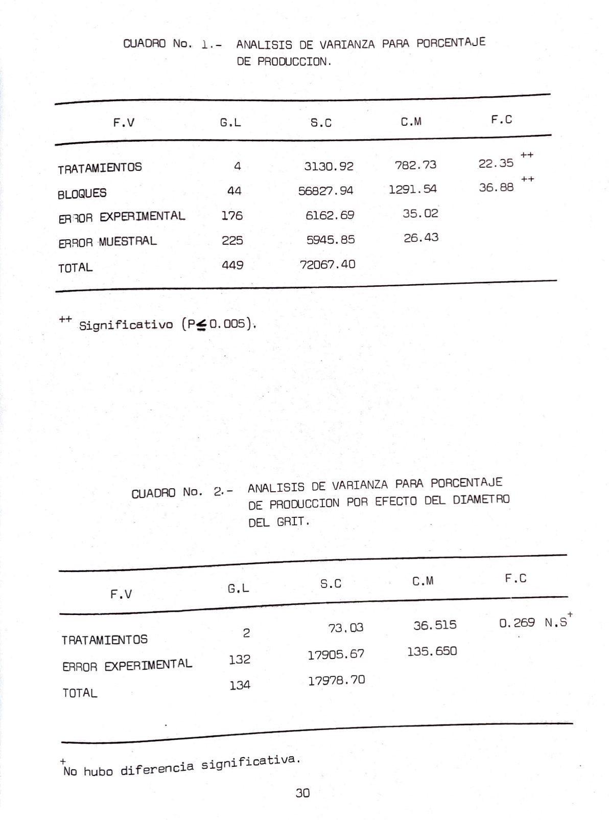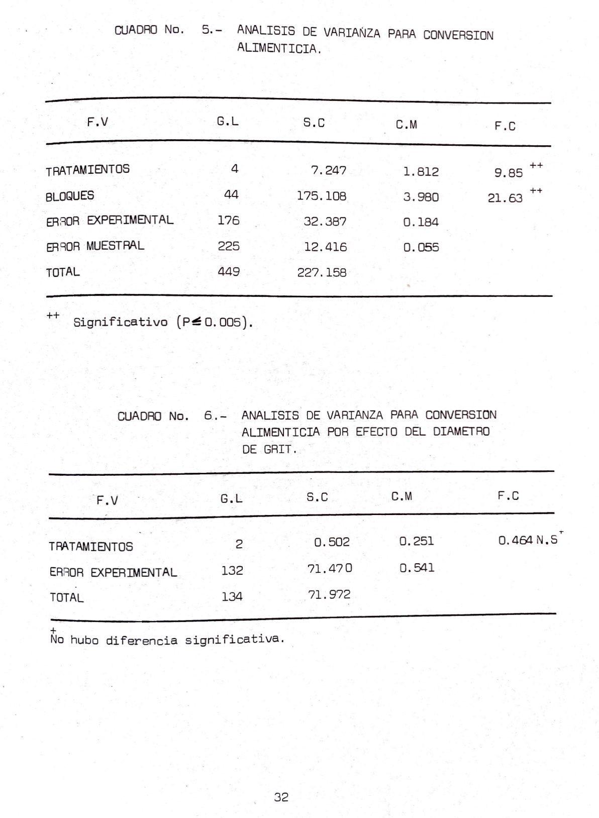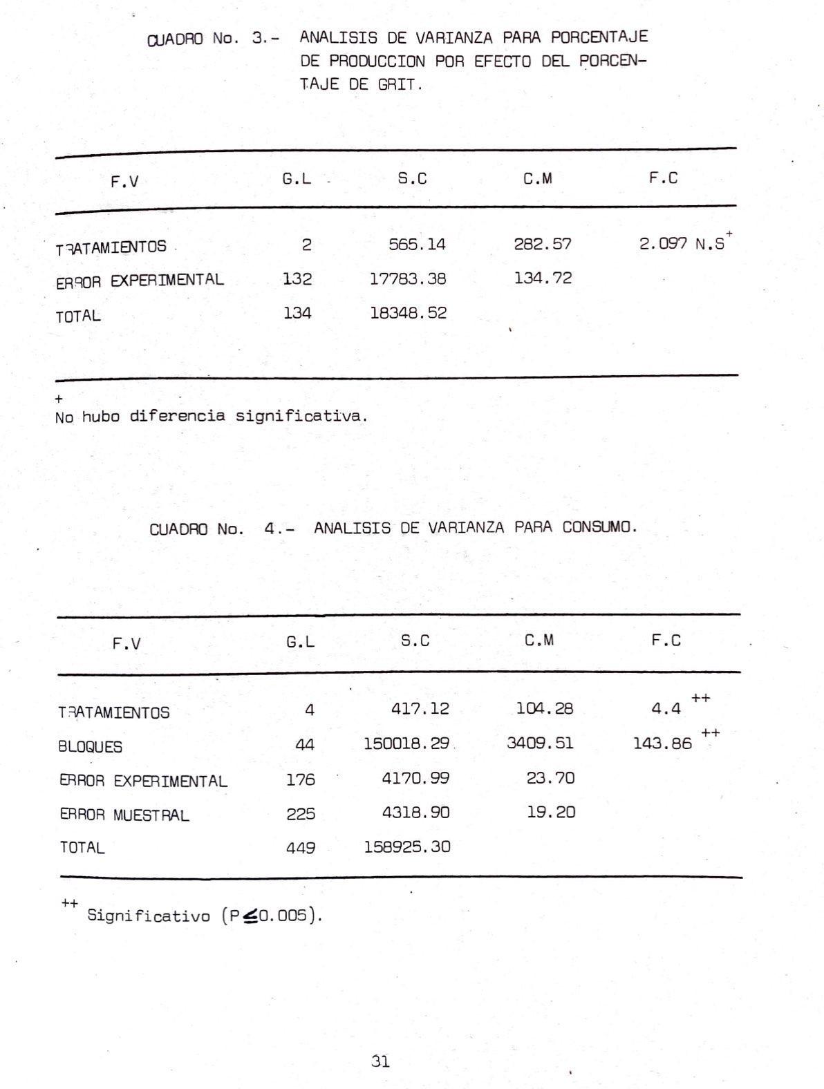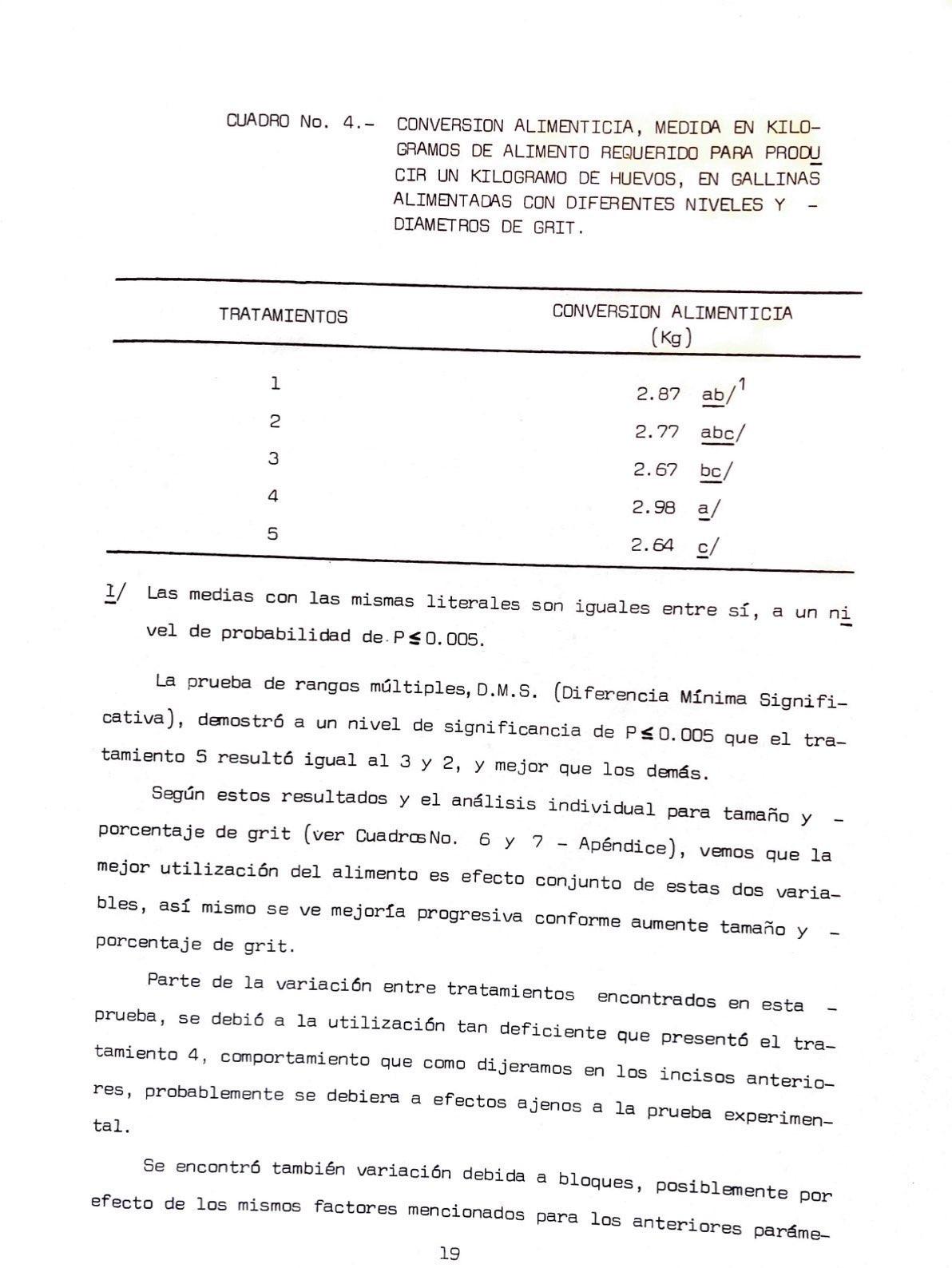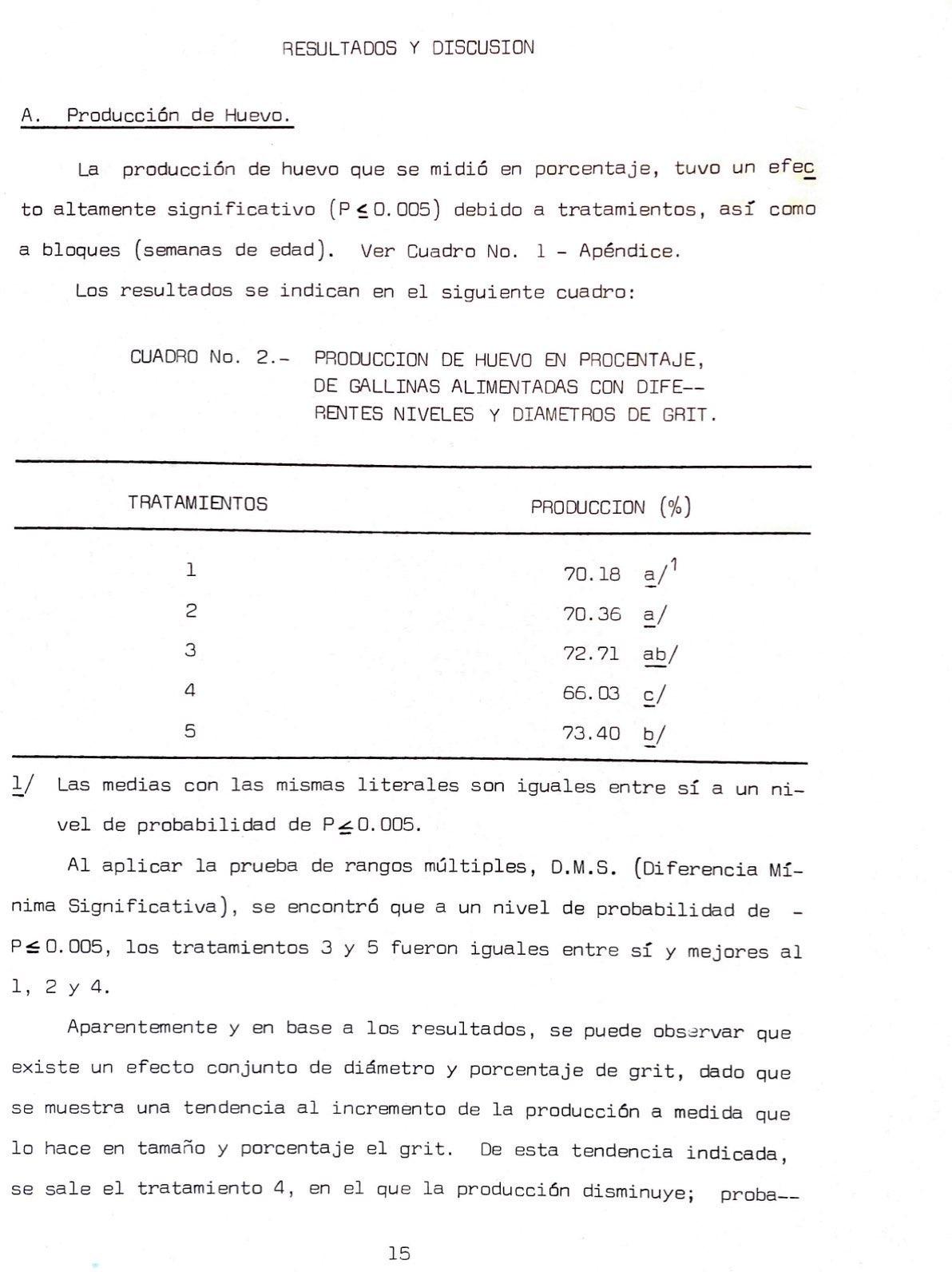 2. Determinar el costo de producción por concepto de alimenta ción con los diferentes niveles y diámetros de grit.