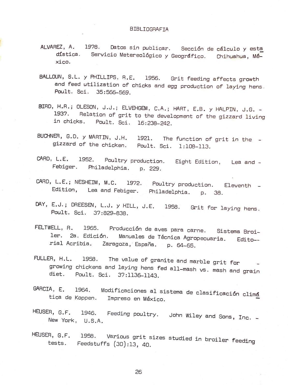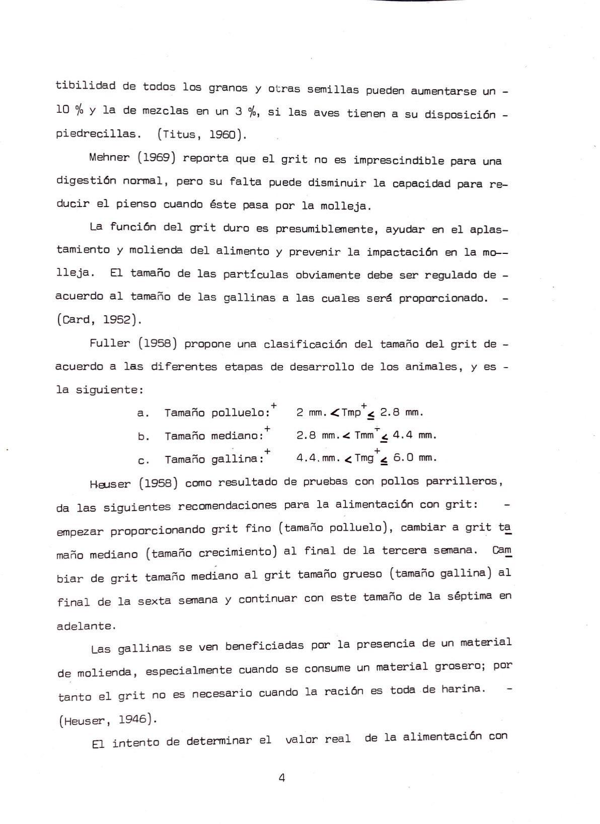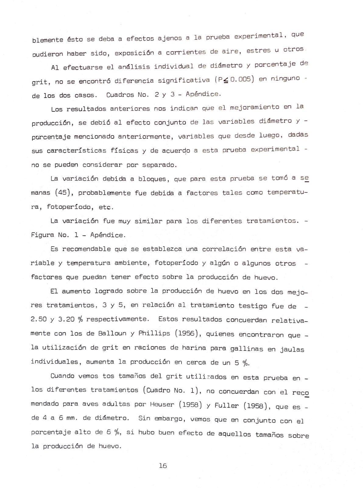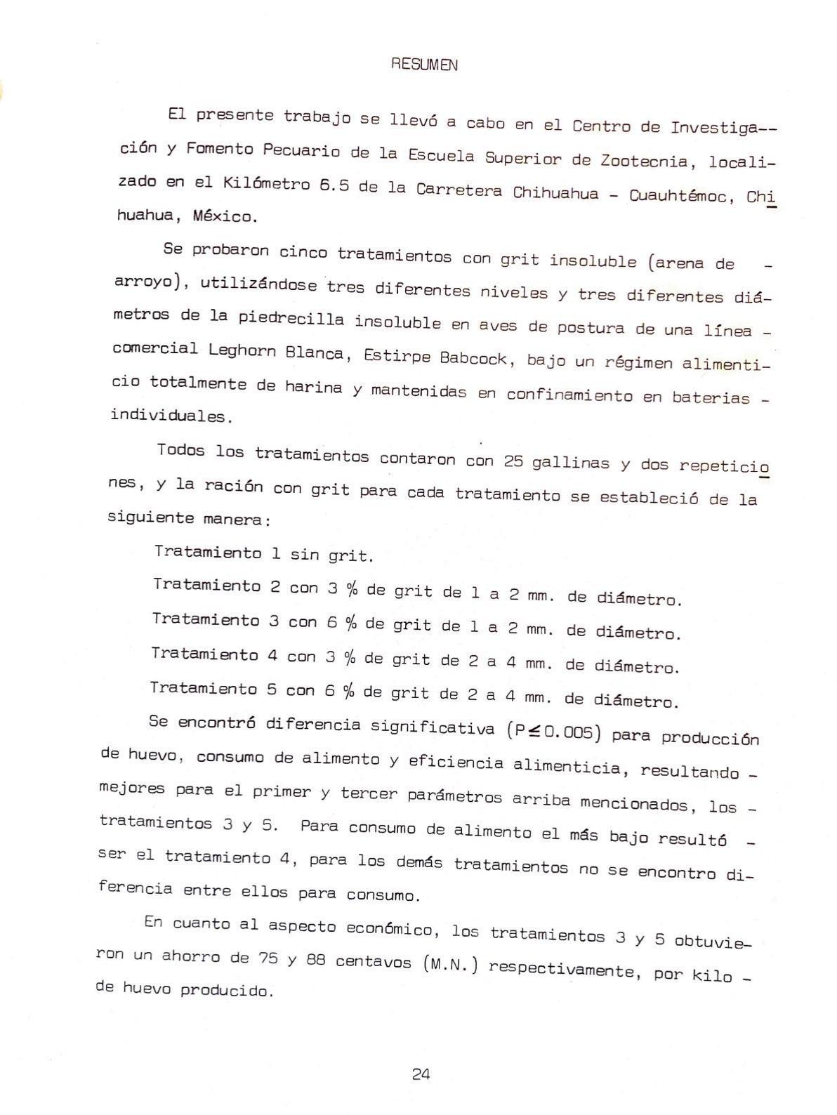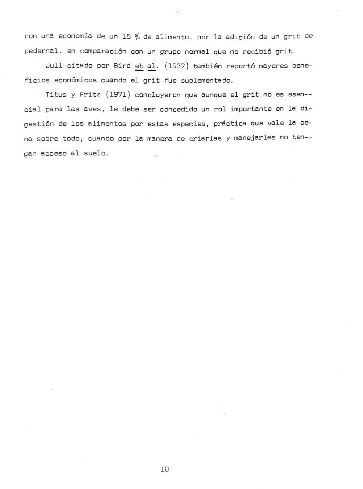 1. Determine the effect of different levels of grit as well as of the diameter of the same on egg production and feed conversion efficiency.