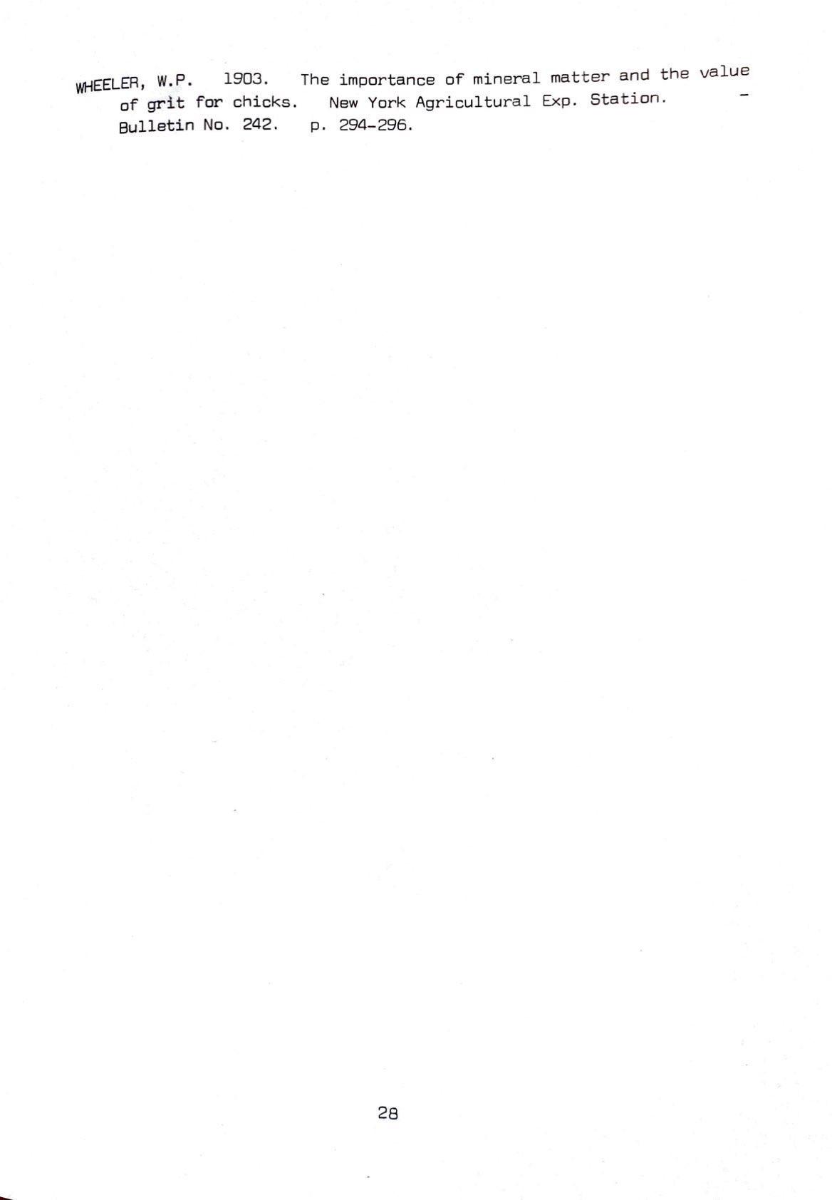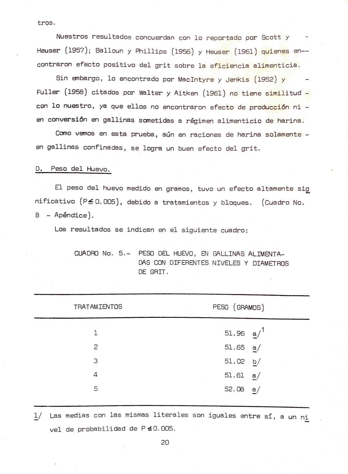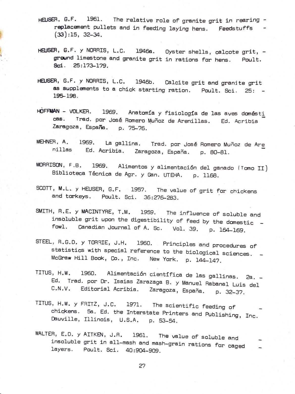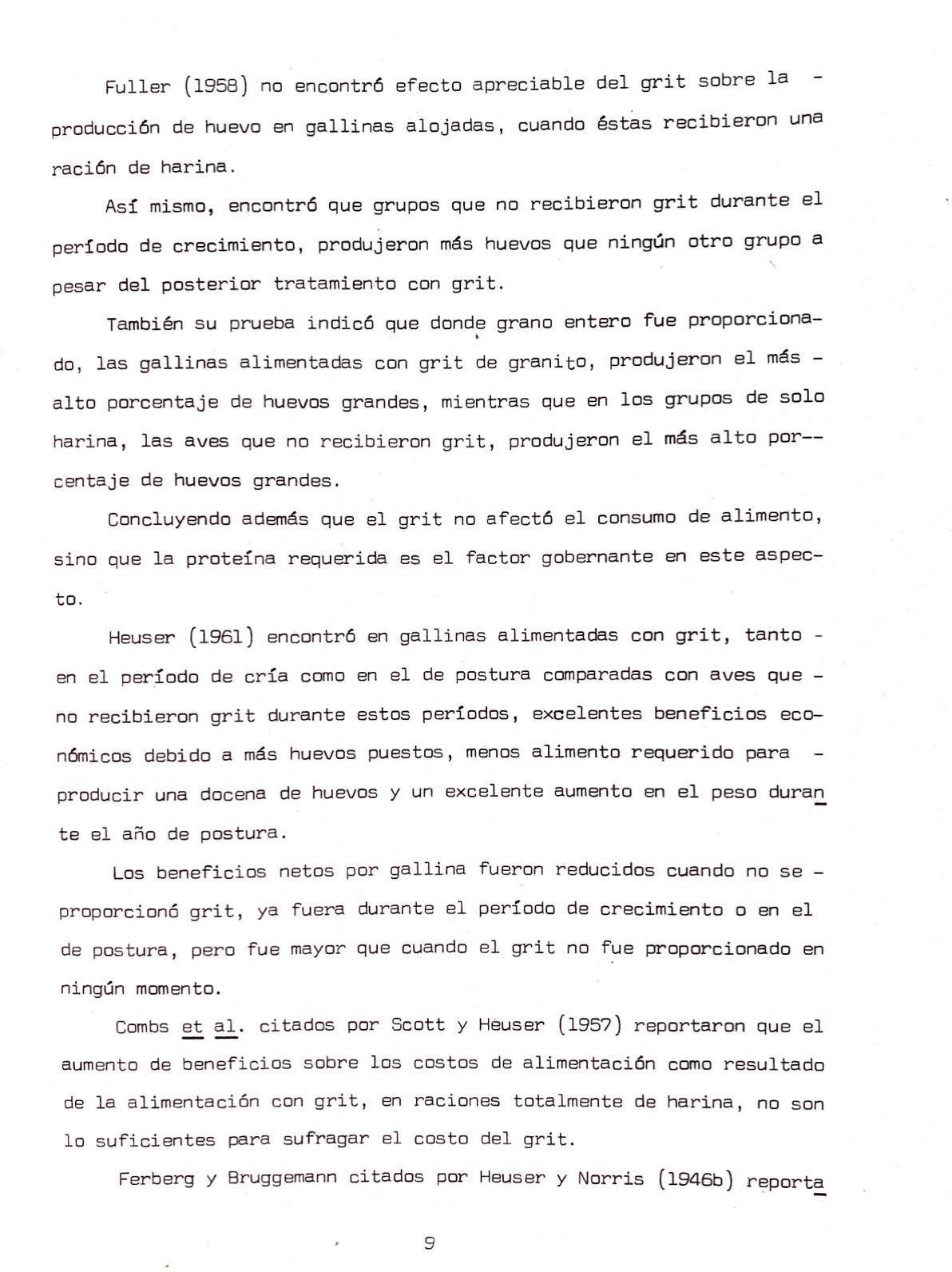 1. Determine the effect of different levels of grit as well as of the diameter of the same on egg production and feed conversion efficiency.