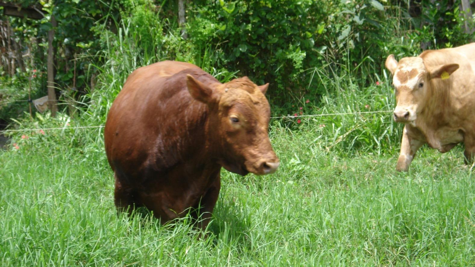 Los animales pastorean estrella africana de 31 dias de rebrote y además el productor dispone de harina de soya, harina de coquito y morera.