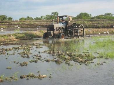 5. A los 30 días después, dar dos pasadas de fangueo, dejar asentar de 3 – 4 días. Drenar, sembrar y sellar con preemergente