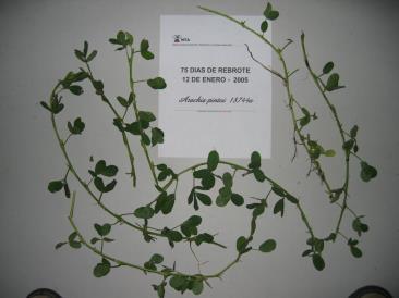 Es ampliamente reconocida las ventajas de los cultivos forrajeros asociados con leguminosas para la producción animal, e igualmente lo difícil de mantener la estabilidad de sus componentes, particularmente en condiciones de pastoreo (2, 6). En el presente caso. sin embargo, el maní forrajero “INTA-Falconiana” se asocia perfectamente con el pasto transvala . En lotes nuevos recién sembrados, el transvala se establece primero dominando en la composición botánica de la biomasa. Sin embargo esta condición no es problema para el maní que poco a poco va colonizando el área, hasta hacer una mezcla homogénea con la gramínea, De ocho a doce meses después de la siembra encontramos un equilibrio entre ambos componentes con aproximadamente un 40 a 45 % de maní y el resto de transvala (Foto 4)