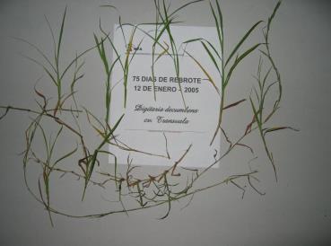 Foto 3. Lote de pasto transvala y estolón de esta planta a 75 días de rebrote