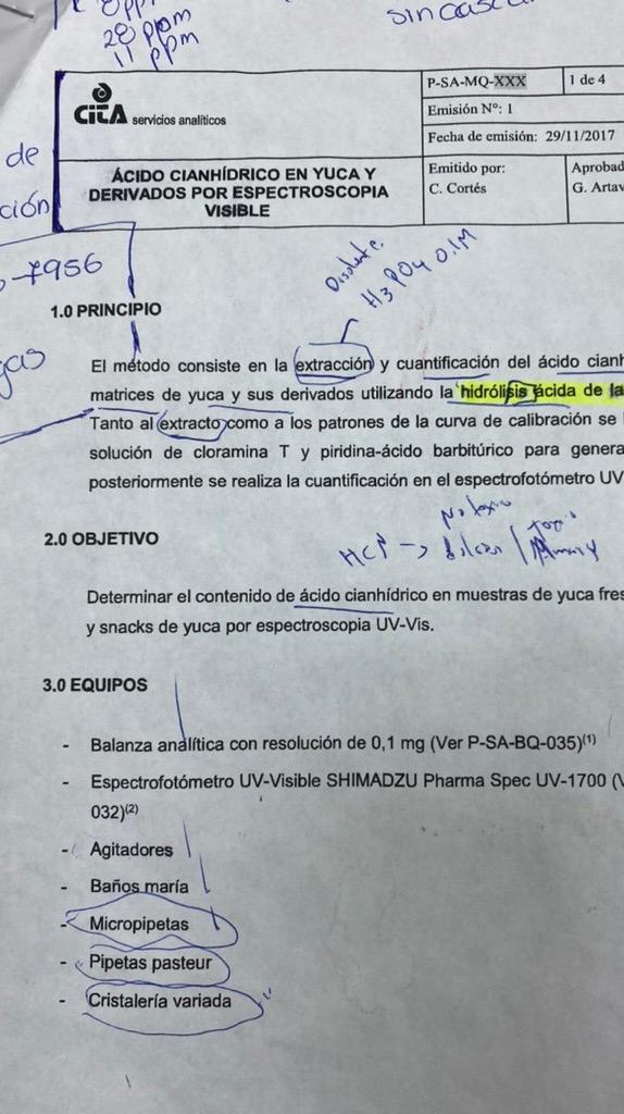 Tanto en ensilaje como en leche, el resultado del contenido de HCN en ambos, por medio de este medio rápido de determinación indica la presencia solamente de trazas de HCN. Se recomienda hacer el análisis simultáneamente por los dos métodos para verificar.