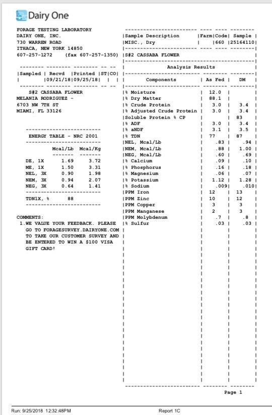Leche vaca 988 4o periodo ensayo consumiendo 9 kg de EY