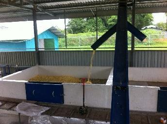 RECIBO DE YUCA FRESCA (se requiere piso para facilidad de limpieza. Ideal recibirla en tanque de agua para lavado previo lo que implica menos uso de agua y mano de obra). IMPORTANTE DETERMINAR CONTENIDO DE ALMIDÓN Y MATERIA SECA AL RECIBO. ESTA ÚLTIMA DETERMINANTE EN COSTOS DE PROCESAMIENTO