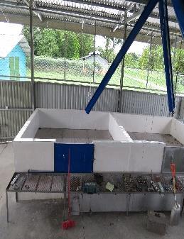Es una estructura de concreto en forma de cajón rectangular con dimensiones internas de 3,66 mts de largo por 1,22 mts de ancho y 0,90 mts de alto. Fabricado todo en block de cemento, de 12x20x40 cms, varilla de hierro negro N° 3 y cemento. Todo revestido, interna y externamente con cerámica. Con sus respectivas puertas de hierro.