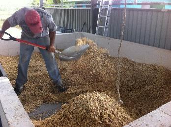 EL SECADOR RECIBE AIRE CALIENTE (65 C) MEDIANTE DUCTOS BAJO LA PASARELA DE MANEJO, QUE PERMITEN INYECTARLO MEDIANTE UN SOPLADOR QUE RECOGE EL AIRE DE UNA CÁMARA DE COMBUSTIÓN OPERADA POR UN QUEMADOR DE GAS PROPANO LICUADO CON TERMOCUPLA PARA EL CONTROL AUTOMATICO PARATEMPERATURA CONSTANTE