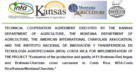 Un acuerdo de cooperación fue firmado entre los Departamentos de Agricultura de Kansas y el Departamento de Agricultura de Montana, con el apoyo de la Asociación Americana de Ganado Charolais Internacional. El objetivo de esta iniciativa es la promoción y el intercambio científico y tecnológico entre las instituciones participantes. El acuerdo estableció un Proyecto de inseminación artificial en Ganado de carne y la diseminación del comportamiento productivo y calidad de la carne de cruzas Charolais y Angus Rojo con Brahman, en fincas colaboradoras en Costa Rica.