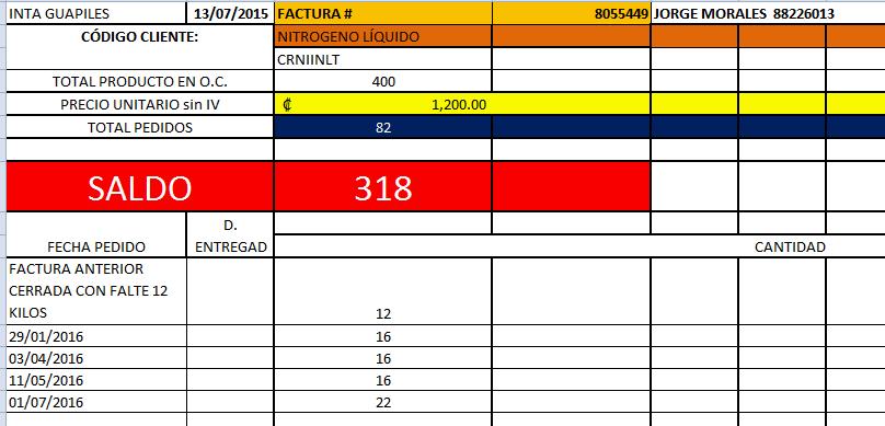 Básicamente el proyecto trabajó con 600 pajillas donadas por los socios de USA, la cuales fueron recibidas en el 2012, con un valor promedio de $20/pajilla y un total de $12 mil. La mitad se recibió por medio de un importador de semen costarricense y la otra fue gestionada por el coordinador para su importación. Esto requirió la atención permanente para el mantenimiento del semen almacenado en dos termos grandes. El mantenimiento lleva ya casi 6 años, con un promedio de 5 llenados con nitrógeno líquido (cada 2 a 3 meses dependiendo de la intensidad del uso), por año, para un total de 60 llenados a un promedio de 8 kg por termo, requirió un total de 480 kg a ¢1200/kg. La inversión total en N líquido fue de ¢576 mil los cuales no incluyen el tiempo (2 hr) y transporte de las 30 cargas durante el periodo. Abajo se presenta una muestra de las cargas de N líquido del 2015.