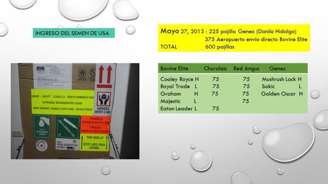 The last 3 columns of the above inventory table indicates that the three parts handling the semen straws failed: the list of semen coming from USA, Vet UNA Lab. Inventory, and INTA semen control manage different numbers, which difference goes between 0,3 to 2,7 %, very small and neglible difference, that gives us all a good administrative control of this valuable biological material at INTA.