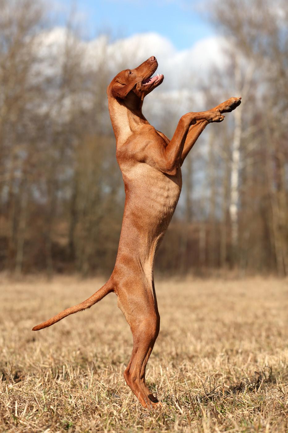 The Vizsla is the national dog of Hungary. Its early origins are hard to trace, but its history probably began in the ninth century. The Vizsla was owned by Hungary’s sporting nobility and before firearms were introduced in the 1700’s, was used to scent and search for birds that were then either caught by falcons or netted. An allpurpose gundog, the Vizsla could hunt, point and retrieve both feather and fur on land or from water. Few survived the wars in 20th Century Europe, but during the Russian occupation, many nationals fled Hungary with their dogs, and the breed subsequently became established over a wider area of Europe. They eventually arrived in other continents, with the first Vizsla coming to Australia from the UK in 1973.
