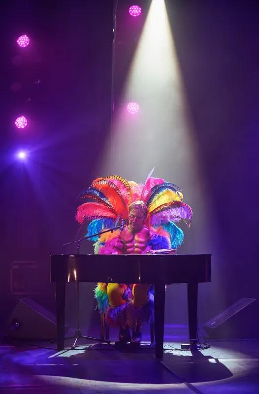 At the center of The Rocket Man Show is Scotsman Rus Anderson, Elton John’s official body double for the Farewell Yellow Brick Road world tour promotional campaigns. Personally handpicked by Elton John and David Furnish, Anderson built his career on this tribute, and it was the authenticity of his own production that caught the icon’s eye. Onstage, he doesn’t merely impersonate; he inhabits a young Elton, storming around the piano with a mix of diva bravado and scrappy rock-and-roll athleticism. Every detail is obsessively dialed in, from Anderson’s fierce piano playing to his uncanny vocals that echo the original’s range, warmth, and edge. His wardrobe goes beyond clever copies: many of the boots, glasses, jumpsuits, and glittering jackets he wears were actually worn by Elton John himself, right down to iconic 1970s looks and a Swarovski-studded tuxedo from the mid-1980s. Under the stage lights, those artifacts don’t feel like museum pieces; they feel like living, breathing rock history.