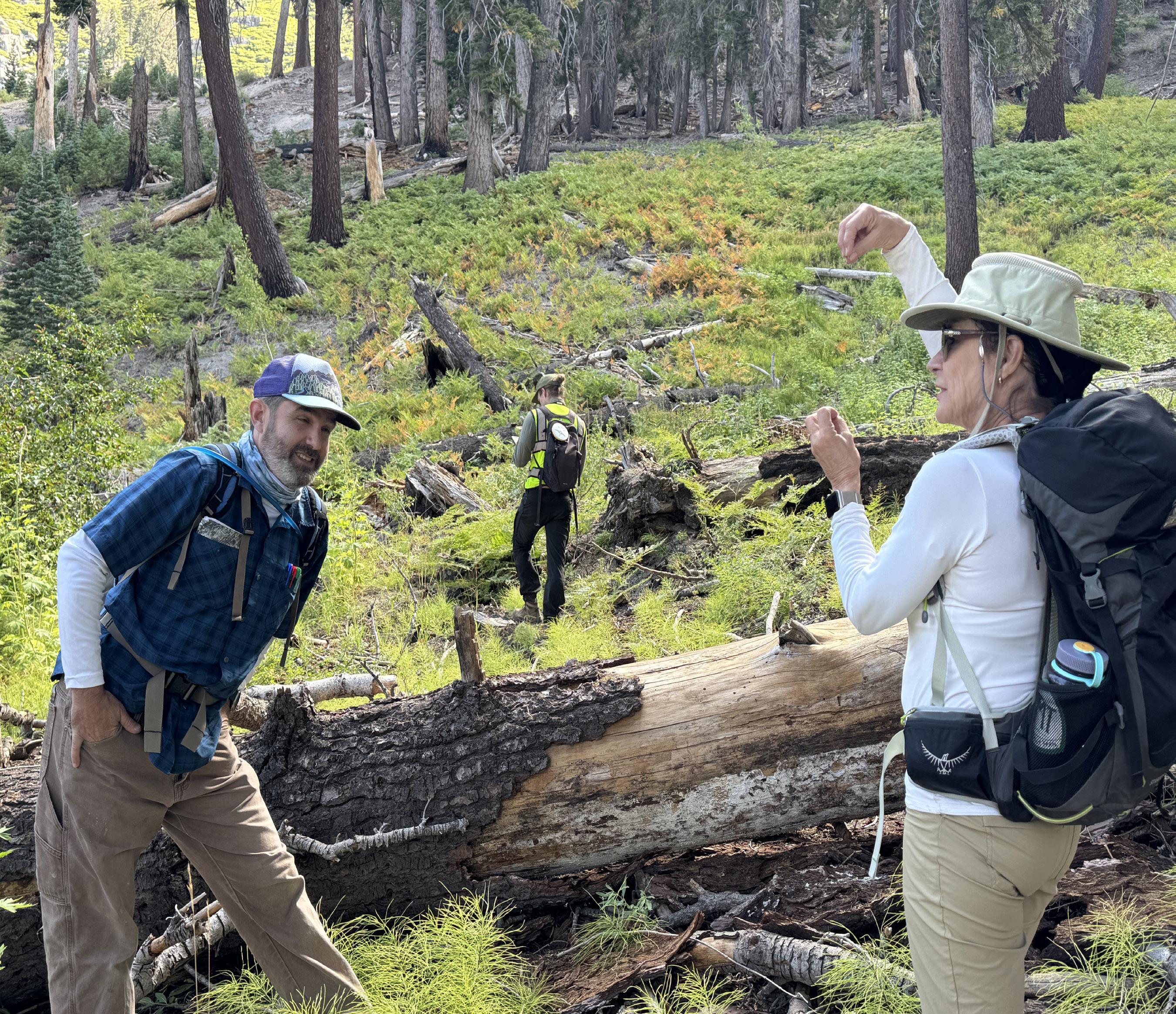 An All Hands team meeting was convened in Mammoth Lakes on July 7th, 2024, which included specialists and professionals from the Forest Service and WRA Consulting, consisting of botanists, hydrologists, geomorphologists, and ecologists; staff from JMT Wild including myself and Marla Stark; leadership from the WhiteBark Institute who manage timber harvest contracts for forest fuels management in Reds Meadow Valley; and Chairman Ron Goode and members of the North Fork Mono Tribe who claim Agnews and Reds Meadows as their native lands.