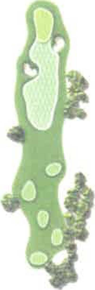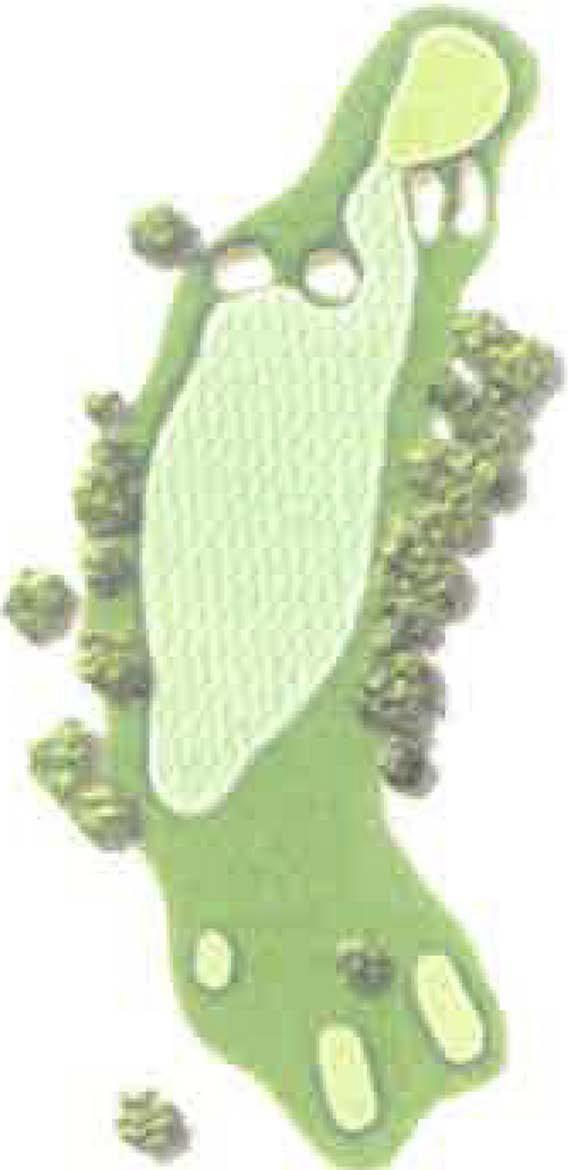 Another Par 5 reachable in two. To get there, the tee shot should favor the left side. The approach must challenge the left fairway bunker; once there, this green is relatively flat.