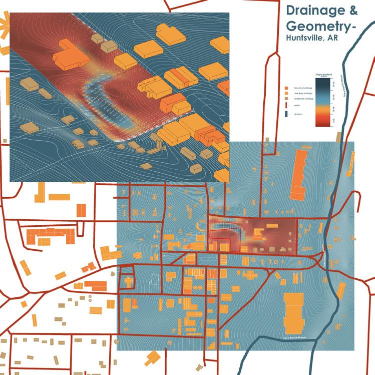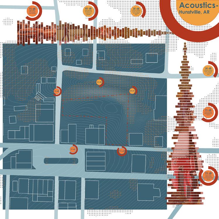 THE SITE ANALYSIS WAS CONDUCTED IN GROUPS OF THREE TO GENERATE A WIDE RANGE OF DATA TO WORK WITH. I FOCUSED ON THE WATER DRAINAGE AND ACOUSTICS OF THE SITE. USING PARAMETRIC SOFTWARE I WAS ABLE TO GENERATE AN ANALYSIS OF THE SLOPE OF THE SITE AND FOUND THAT THERE IS HUGE PATENTIAL FOR WATER CAPTURE ON THE SITE. USING A DECIBEL METER, SOUND LEVELS AROUND THE SITE WERE CAPTURED DURING OUR SITE VISIT. BOTH OF THESE ANALYSI SUGGESTED THAT PUSHING OUR BUILDING TOWARDS THE BACK OF THE SITE WOULD CATER A MORE PEACEFUL EXPERIENCE FOR READERS WITH THE POTENTIAL TO CAPTURE RAINWATER.