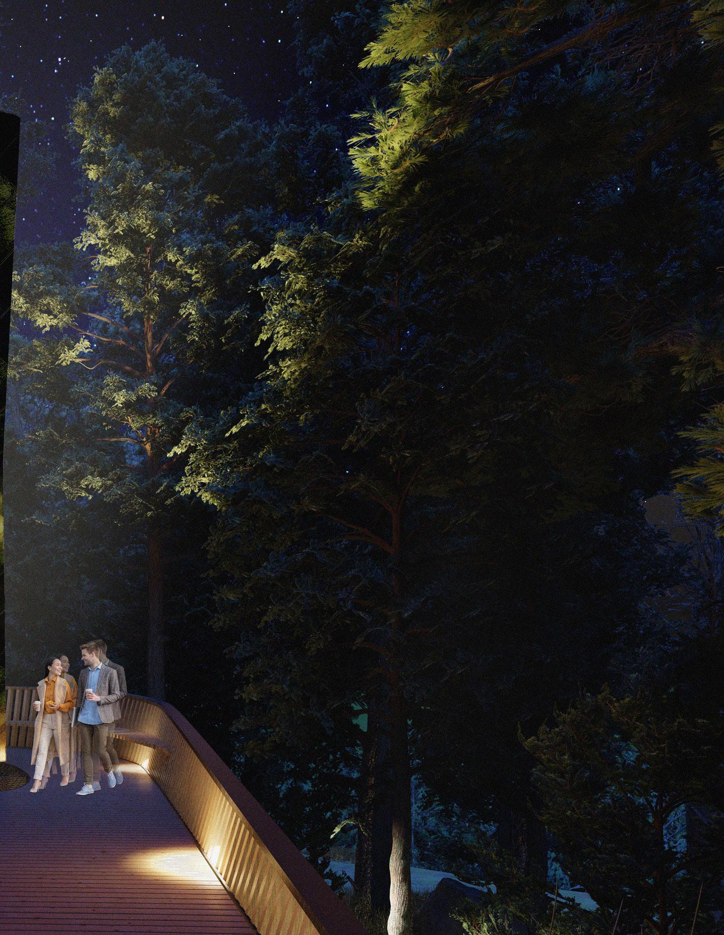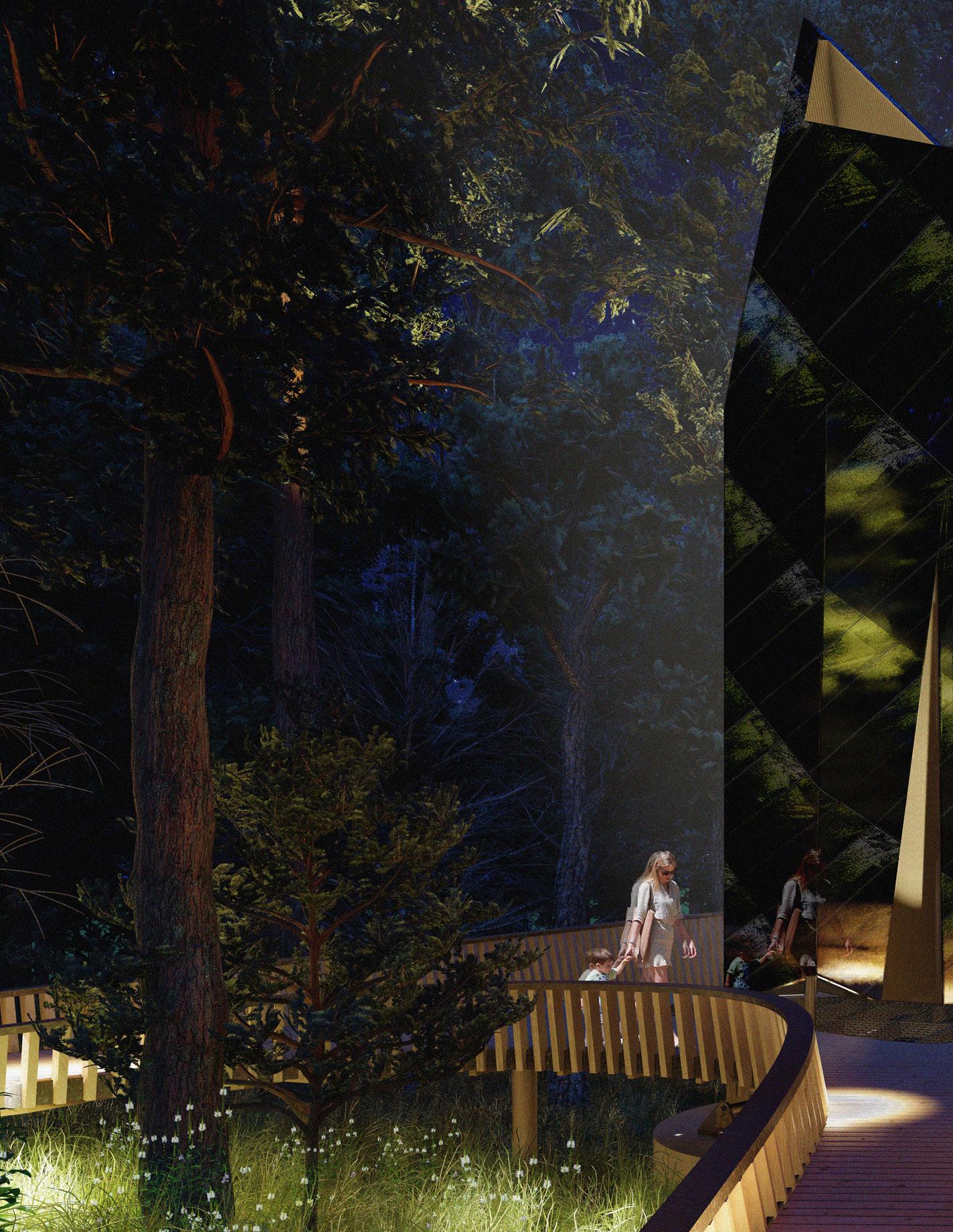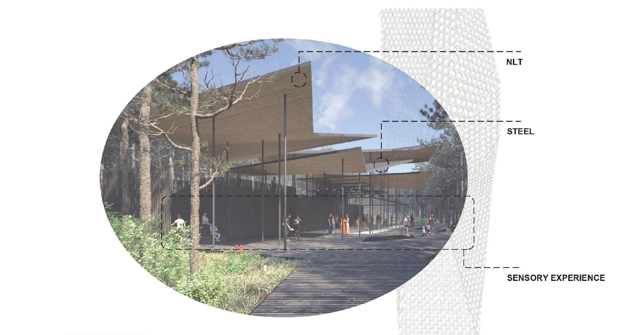 IS A PILOT PROJECT FOR THE WHIPPLE FAMILY FORESTRY CENTER LOCATED ON THE GROUNDS OF GARVAN WOODLAND GARDENS IN HOT SPRINGS ARKANSAS. ROSS AND MARY WHIPPLE PROVIDED A GENEROUS DONATION TO THE UDBS STUDIO TO CREATE AN EDUCATION CENTER FOR PEOPLE TO LEARN MORE ABOUT THE PRESERVATION OF FORESTS AND WHAT FORESTRY CAN PROVIDE FOR INDIVIDUALS. THE PROJECT’S PURPOSE IS TO TEST THE MATERIALS OF THE WHIPPLE PROJECT (NAIL LAMINATED TIMBER, SHOU SHUGI BAN CLADDING, AND METAL BREAKING FOR THE ROOF) WHILE ALSO CATERING TO THE ETHEREAL EXPERIENCE OF THE CENTRAL ARKANSAS FOREST.