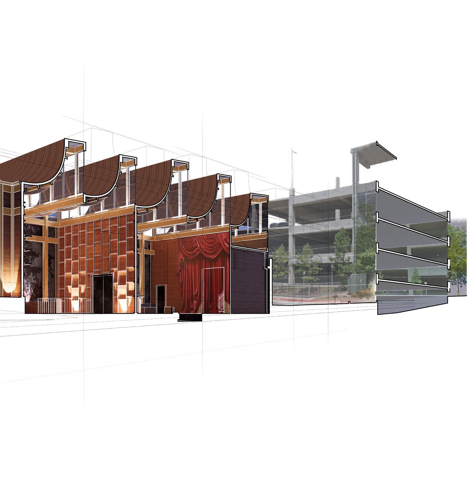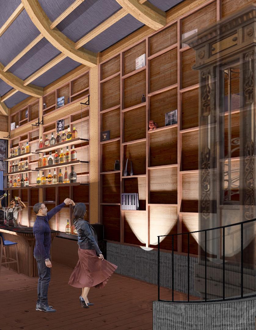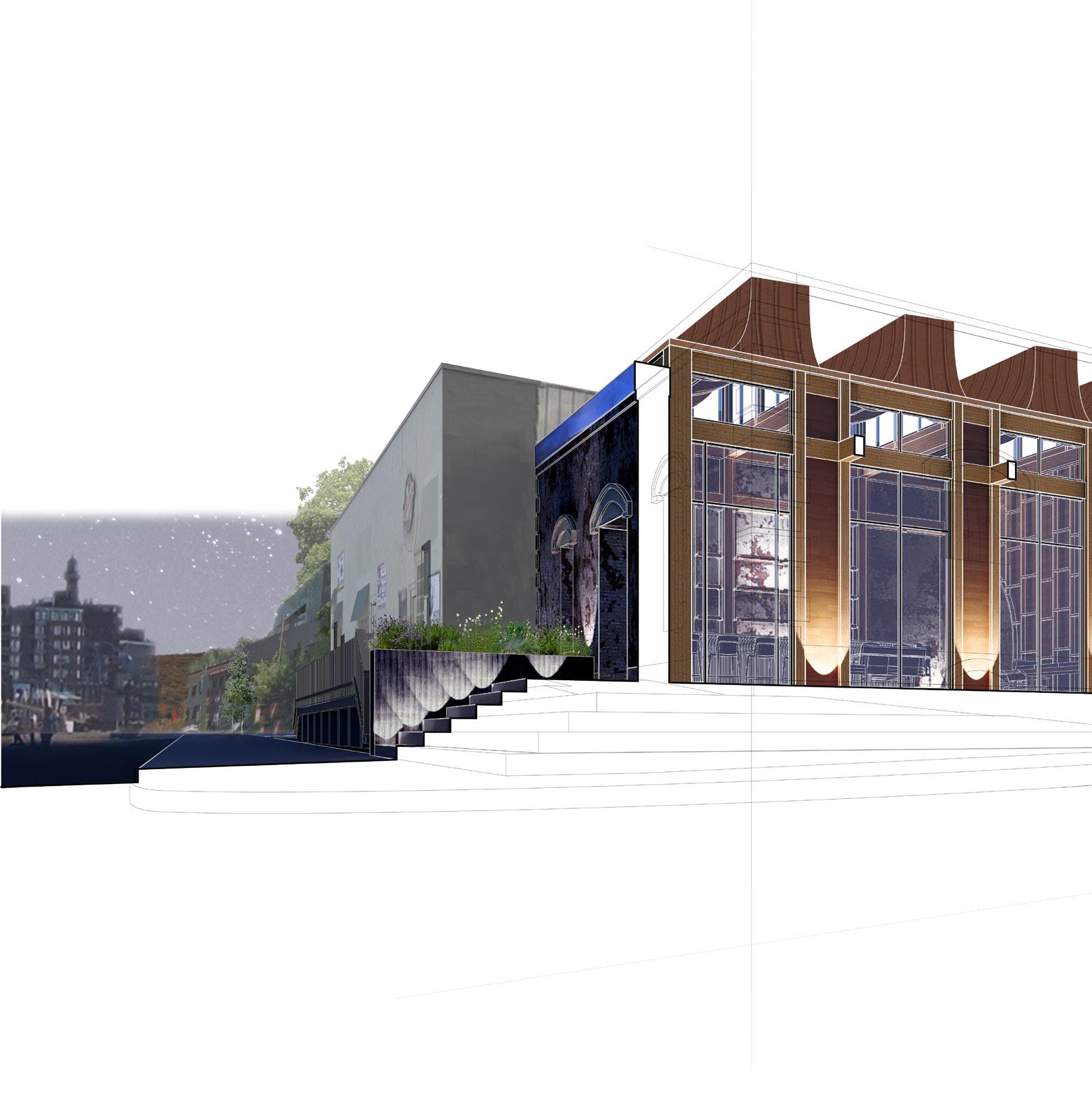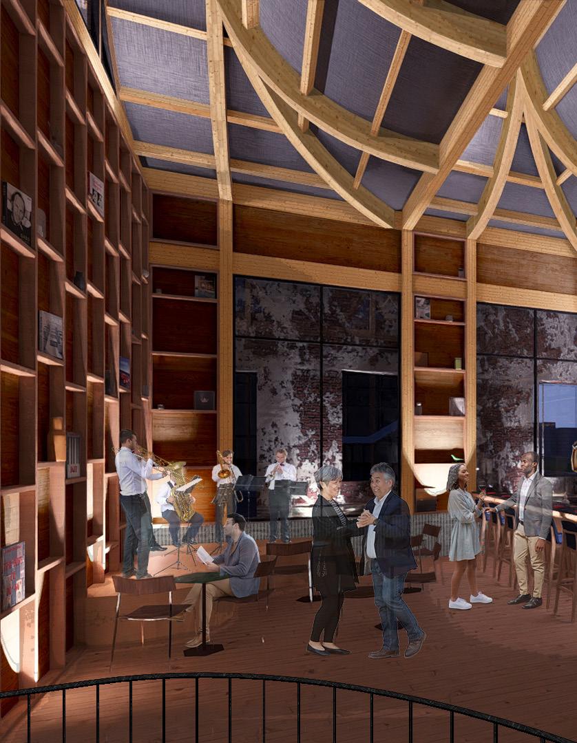 AIMS TO BE A NODE THAT DRAWS INDIVIDUALS FROM THE POPULAR BAR DISTRICT ON DICKSON STREET TO SPRING STREET. THIS ADAPTIVE REUSE PROJECT TAKES A HISTORICALLY REGISTERED BUILDING AND REPURPOSES THE ORIGINAL FACADE TO CREATE A PROGRAM THAT WOULD COINCIDE WITH IT’S IMMEDIATE CONTEXT. THIS OLD BRICK BUILDING SITS IN A LIVELY PART OF TOWN THAT HOUSES LIVE MUSIC, THEATER, AND DINING EXPERIENCES. AS A REACTION TO THESE PROGRAMS, THIS BUILDING HAS BEEN REPURPOSED INTO A JAZZ CLUB WITH A HYBRID PERFORMANCE SPACE THAT WILL CATER TO LIVE MUSIC PERFORMANCES, STAND-UP COMEDY, AND PLAYS.