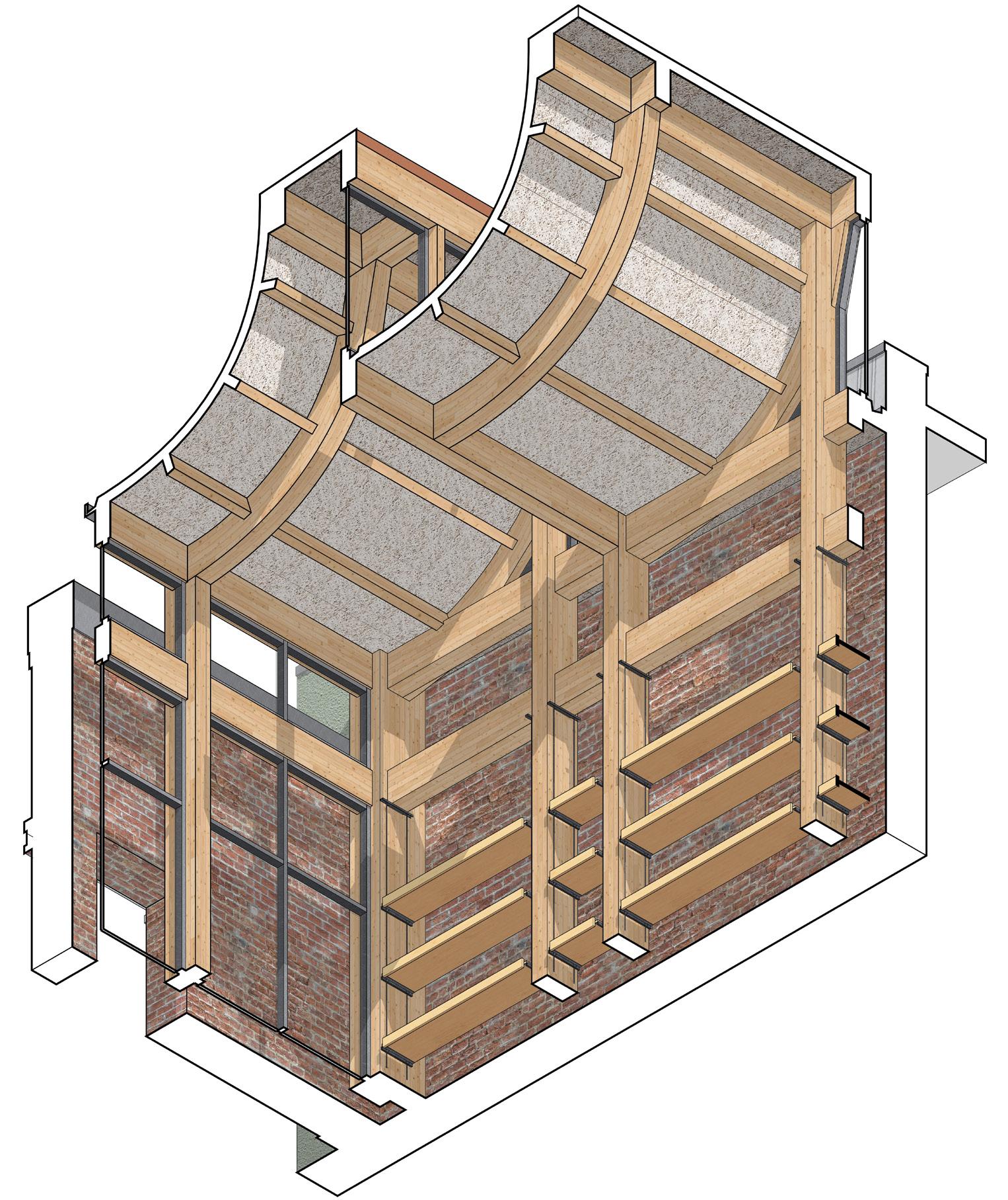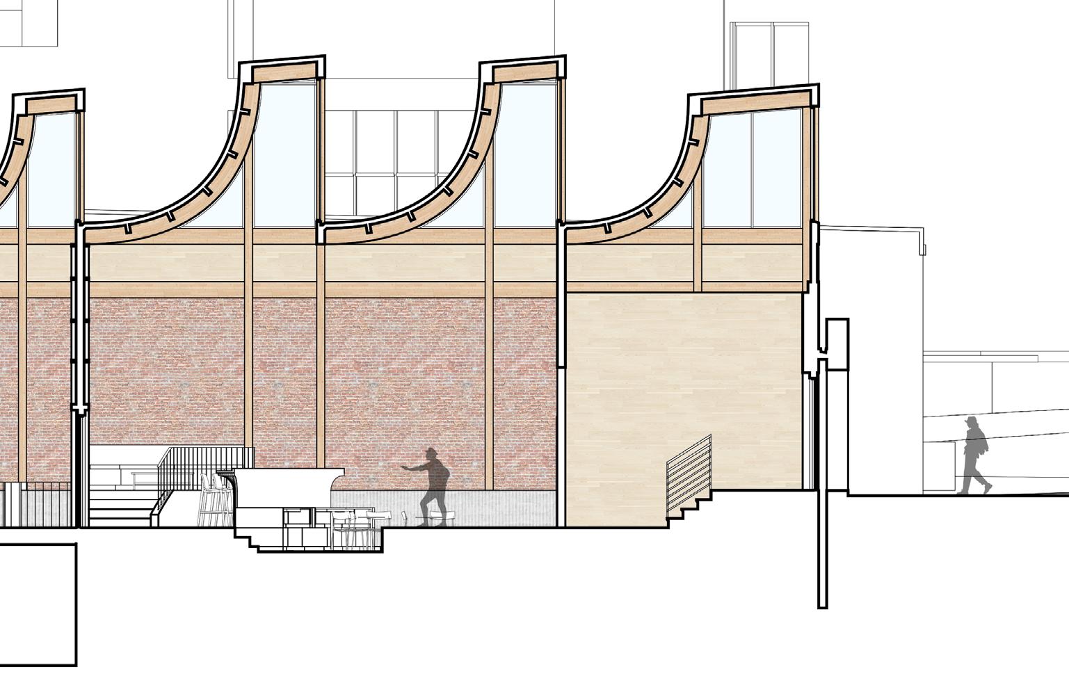 1. 1/2” Steel Fasteners 2. 1/2” Steel Connector 3. 1/4“ Galvanized Aluminum Supports 4. 1/4” Aluminum Bolts 5. 1/4” Custom Aluminum Clips 6. 1/4“ Opaque Glass Louvers 5 4 6 3 1 2 1. 8” x 30“ Glue Laminated Beam 2. 2” Wood Pegs 3. 1/2” Steel Bolts 4. 1/4“ Steel Plate Connector For Beam 5. 1/4” Steel Plate Connector for Truss Chord 6. 18“ 24” Glue Laminated Truss Chord 7. 1/4” Steel Plate Connector to Webs 8. 9“ x 11” Glue Laminated Web Diagonals 1 2 3 4 5 3 6 4 5 4 3 7 8 3 3 36 CRITICAL DETAILS