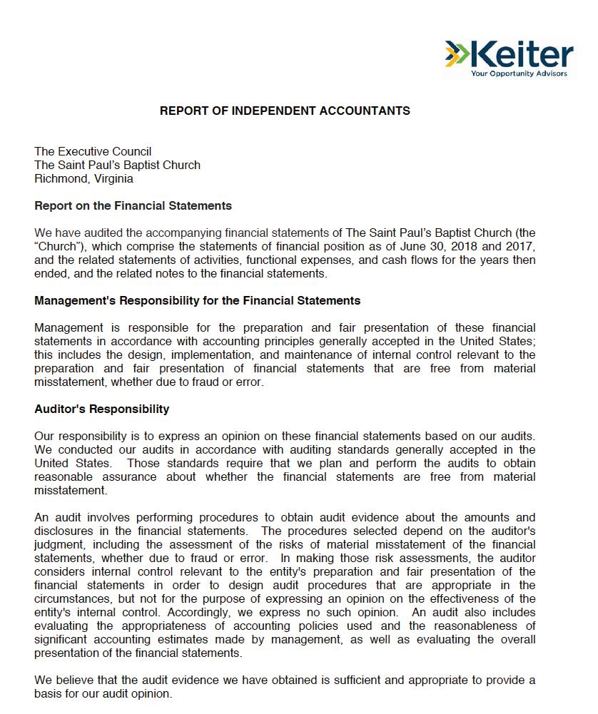17THE SAINT PAUL’S BAPTIST CHURCH / ANNUAL REPORT 2017 - 2018