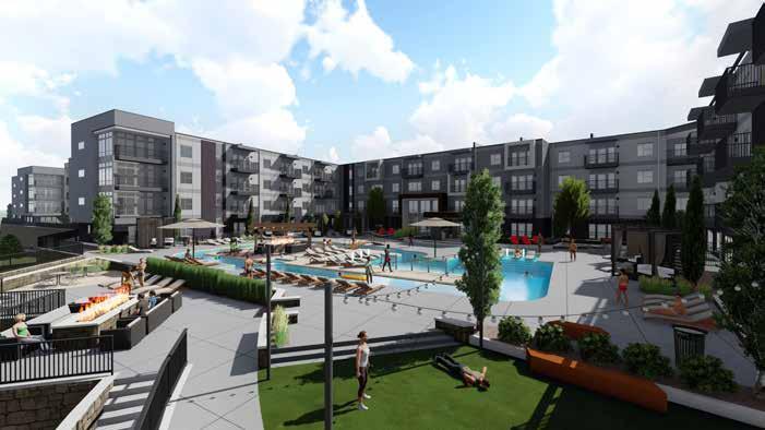 This project is a 323 unit wrap style apartment building that includes a clubhouse, fitness center, and pool courtyard. It totals 510,000 square feet with a construction cost of 67 million dollars.