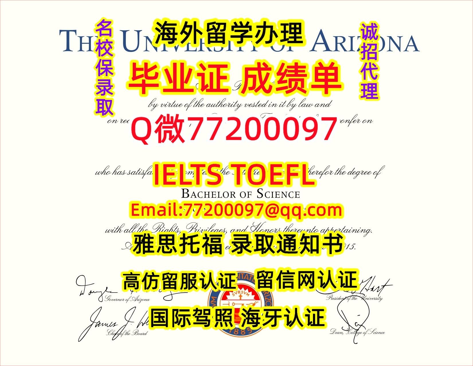 学位成绩单制作U-Arizona毕业证书精仿亚利桑那大学毕业证书