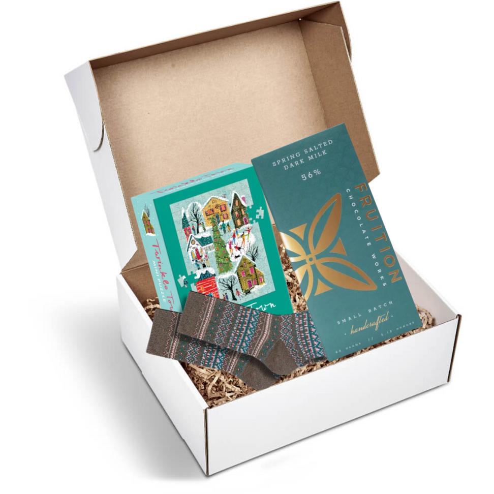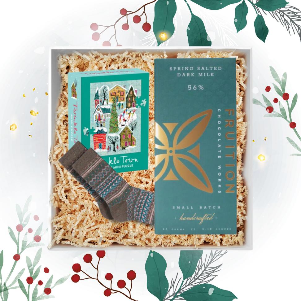 This holiday time gift box is packaged to bring joy and warmth to your loved ones.
