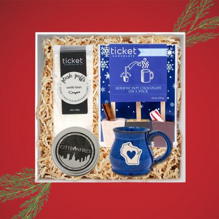 Experience winter's enchantment with our Winter Blue Box: a cozy blend of handmade pottery, portable fire pit, fluffy marshmallows, and indulgent hot chocolate sticks.