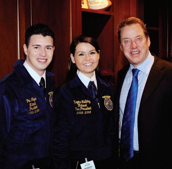 National FFA officers Paul Moya and Regina Holliday visit with Bill Ford of Ford Motor Co., a National FFA Foundation platinum sponsor.