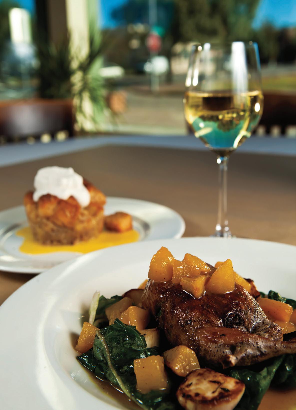 patrons can pair a meal such as herb roasted quail and maw maw bread pudding with wine and gift shopping at ellerbe Fine Foods and market.