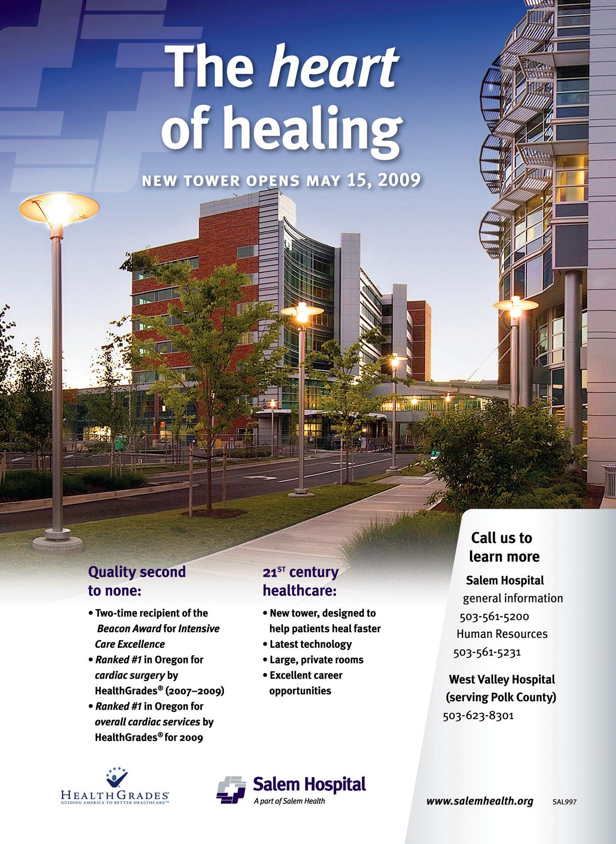 cardiovascular patients,” Howard says. “HealthGrades has just rated Salem Hospital No. 1 in the entire state of Oregon for overall heart services and heart surgery. A nice point about the fifth floor is that cardiovascular patients can stay in their same room during the entire recovery process. Most hospital cardiovascular rooms are either for critical care or intensive care patients, but the patients at Salem Hospital remain in the same room no matter what their condition. We just simply remove equipment as the patient gets better.”