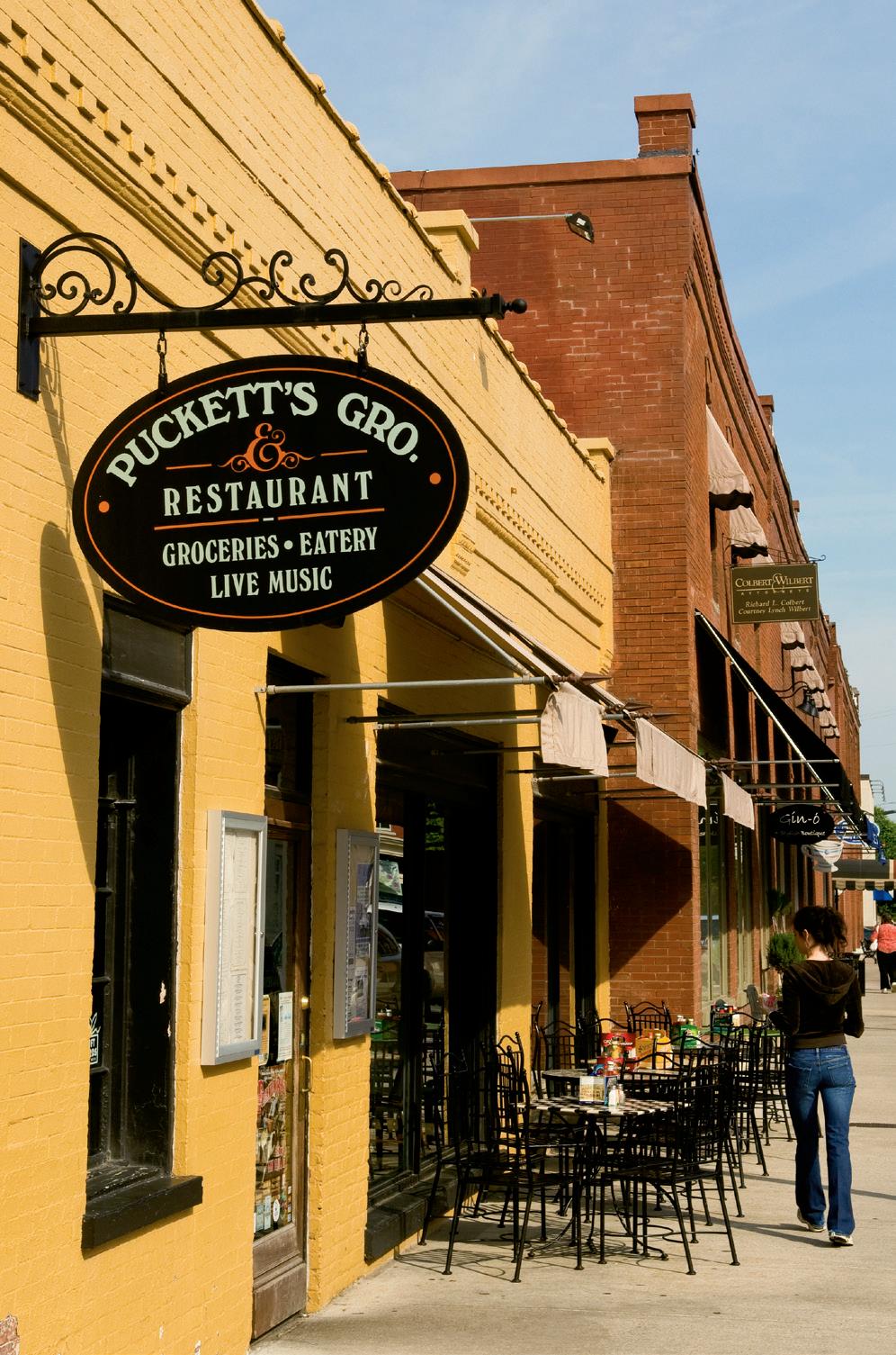 puckett’s grocery & Restaurant got its start as a culinary destination 10 years ago in leiper’s Fork, and owner Andy Marshall added a similar eatery on Fourth Avenue south in downtown Franklin in 2005. “We serve great food, and the residents of both leiper’s Fork and Franklin really support us,” Marshall says. “We have a menu filled with southern favorites, including barbecue and ribs that the kitchen staff hickory smokes itself.”