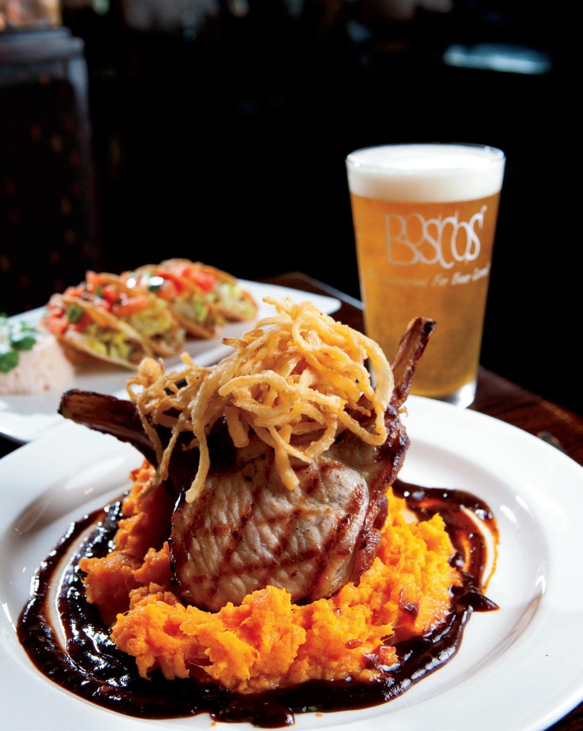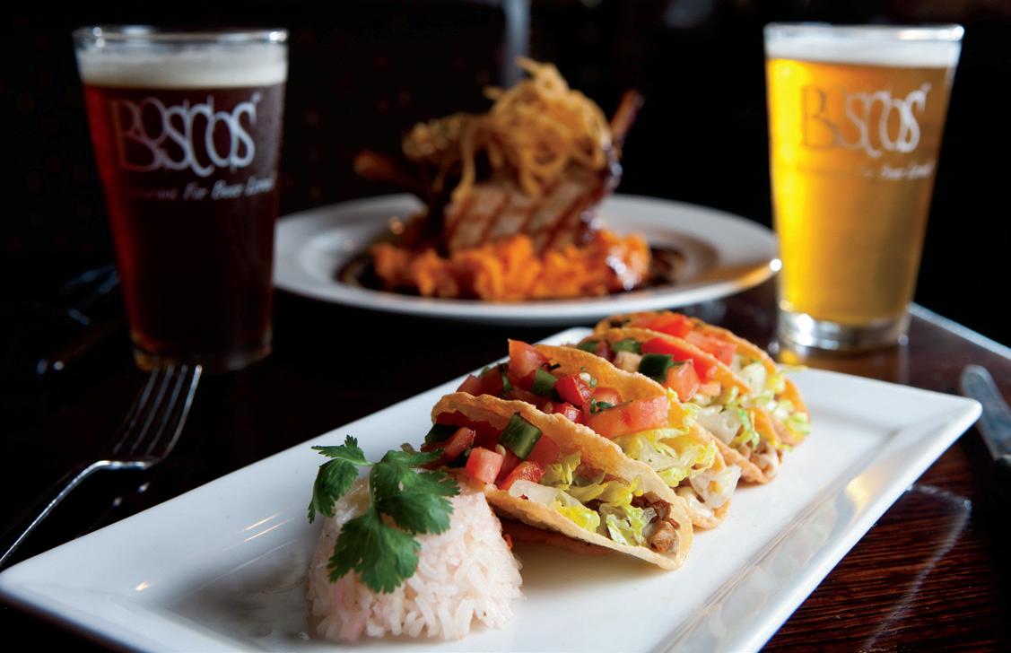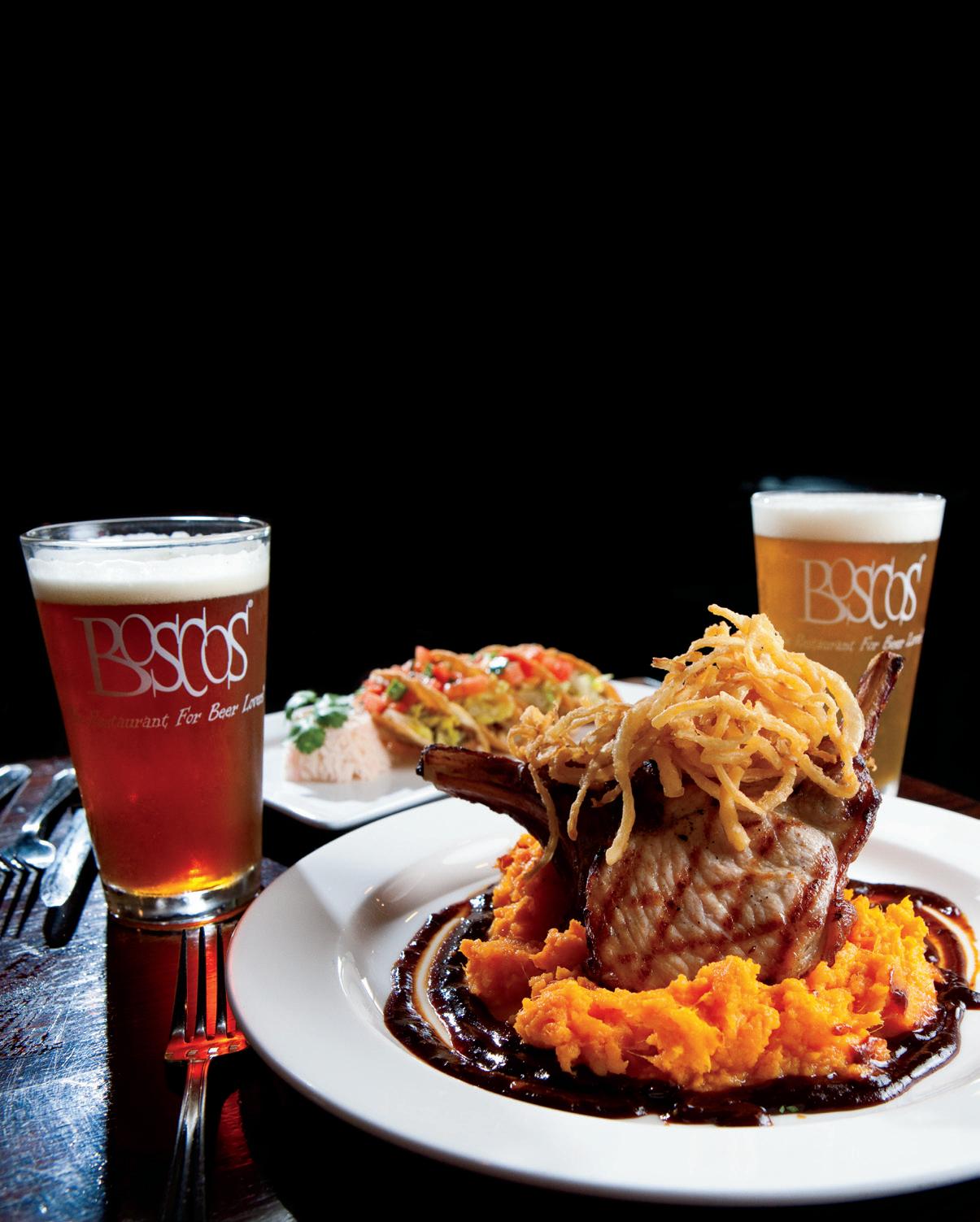 But Boscos’ main attraction is its award-winning, handcrafted beer. The popular brewery offers up to 50 different varieties each year, including its internationally recognized Famous Flaming stone, the amber Bombay ipA and robust, full-bodied stouts and porters.