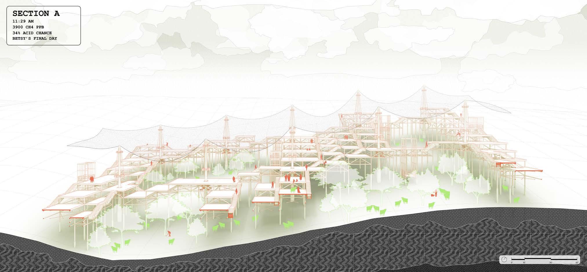 Allensworth, California, is a paramore of abandonment, perseverence, and rebirth. frAm3 takes these characteristics as design pillars and repurposes them as Axis, Alternative, and Autonomy. as we observe Allensworth’s tumultuous history, frAm3 stands as a break in its doomed timeline; a new agricultural research center is offered, one where small farmers can learn to compete with Big FarmA and its environmental havoc.