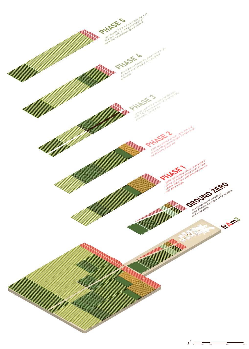 alternative materials are proposed throughout the architecture. reclaimed wood and polycarbonate are implemented wherever possible; adobe brick is fashioned on-site; and supercompressed straw generates insulation. frAm3’s research focuses on dry, vertical, and urban farming to provide as many options to visiting students as possible. given program elements are pushed into new territories to challenge architectural status quos and the competition itself. passive systems, such as cooling towers and operable walls, are implemented to reduce mechanical reliance.