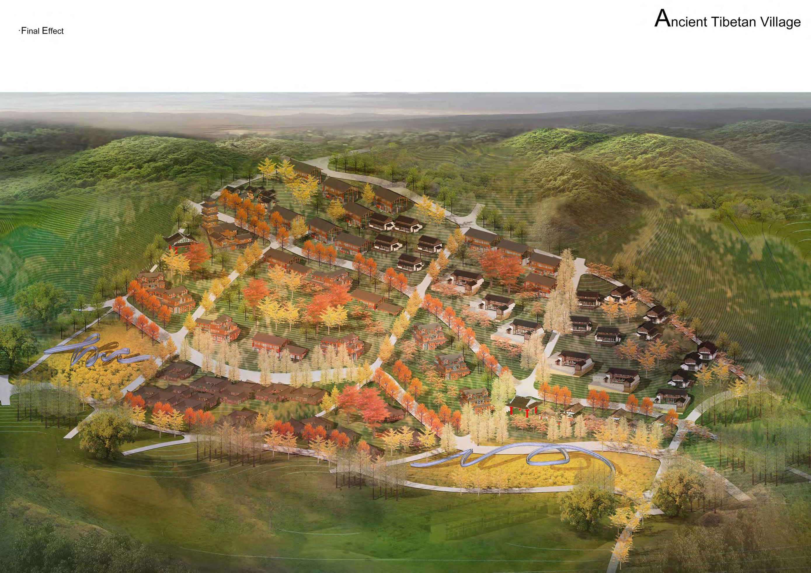 The planned ancient Tibetan village has a main characteristic commercial and cultural pedestrian street. There are open spaces at two ends of the pedestrian street. Usually, the stage can be set up here to perform Sichuan Tibetan folk songs and dances and holographic projection technology can be installed to realize the freedom of both actors and audience in time and space. During the cultural festival or the Tibetan calendar year the construction festival may be publicized to all parts of the country. In this way, the popularity of the ancient Tibetan village can be improved and the charm of culture can be exerted.